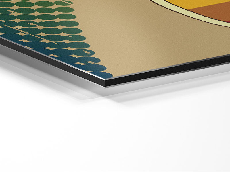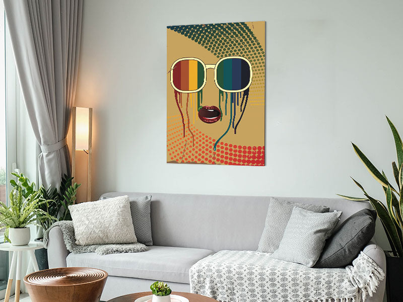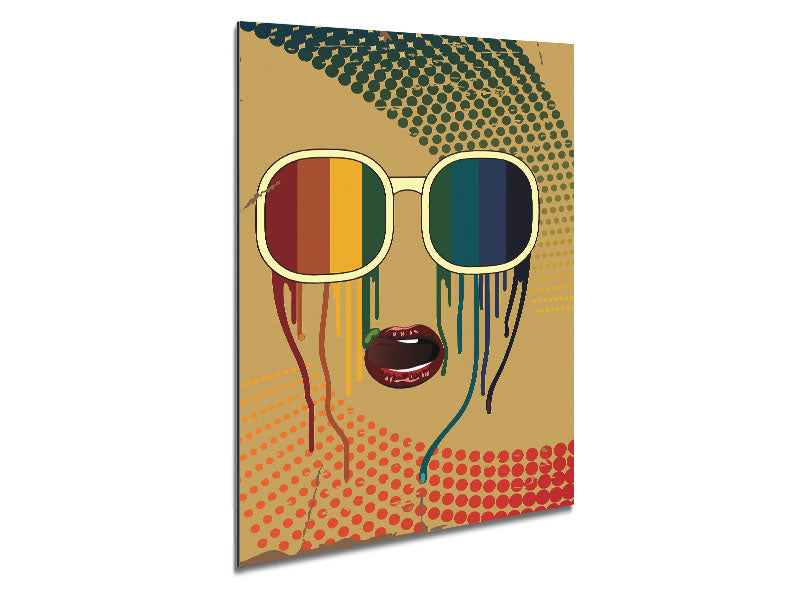 Funky Rainbow Sunglasses Gedruckt auf gebürstetem Aluminium-Dibond. Eine moderne Art, Kunst zu präsentieren und leicht zu pflegen.