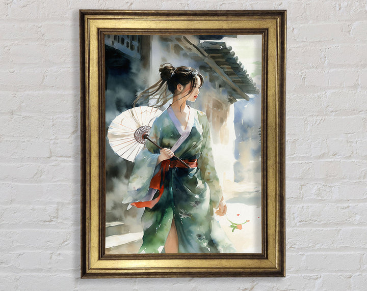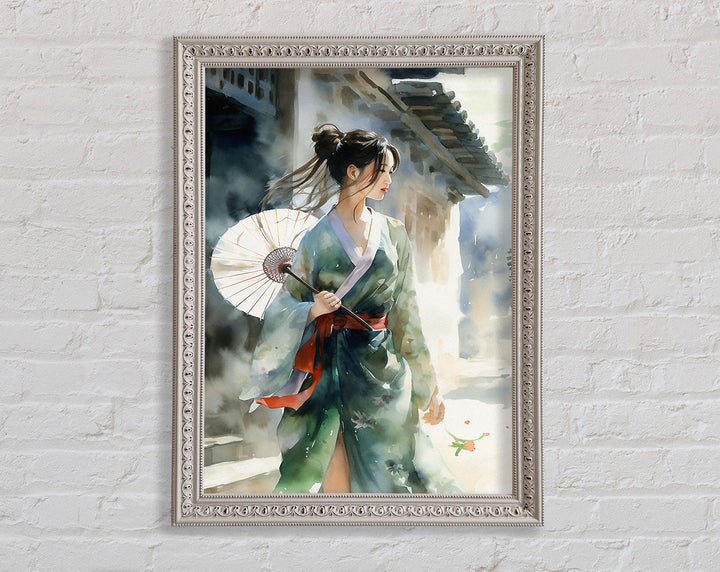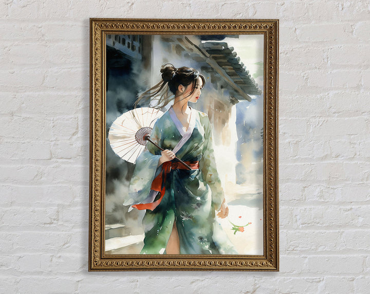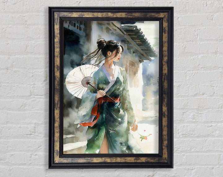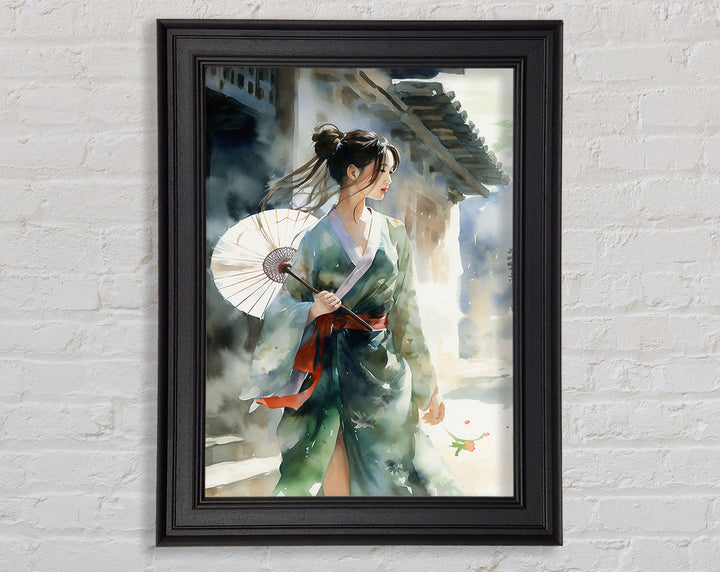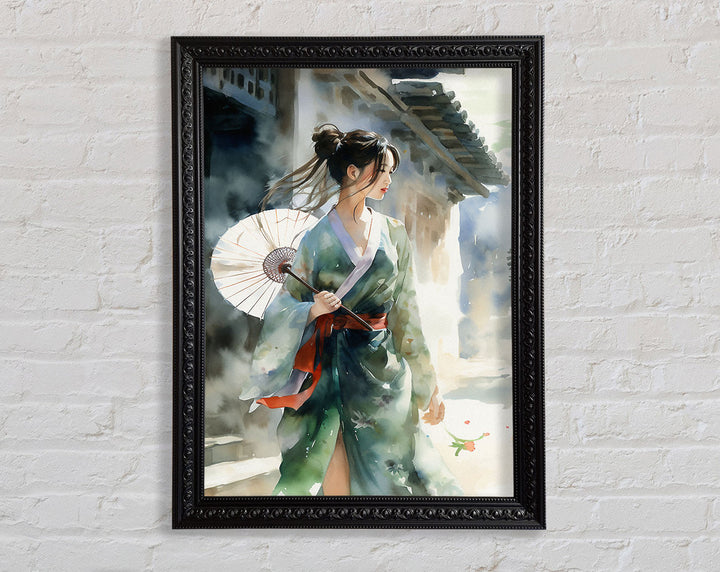 Geisha Girl Watercolour Framed Print