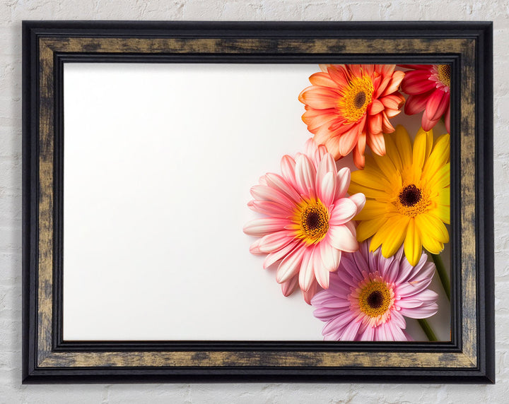 Transform your space with the vibrant beauty of the Gerbera Gathering Framed Print. This stunning piece of framed art is available in six sizes, from small to oversized, ensuring the perfect fit for any room. Handcrafted with care in the United Kingdom, each print showcases the rich, cheerful colors of gerbera flowers, bringing a touch of nature indoors. Ready to hang right out of the box, this versatile artwork comes in a variety of colors to match your decor seamlessly. Whether you're brightening up your living room, bedroom, or office, the Gerbera Gathering Framed Print adds a pop of color and a touch of elegance to any space.
