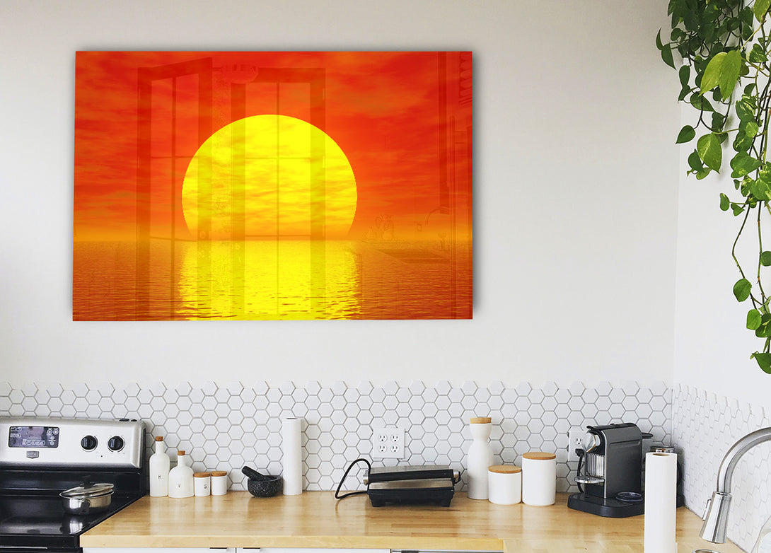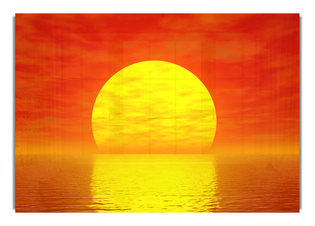 Herrlicher orangefarbener Sonnenuntergang-Acryldruck, UV-gedruckt auf 5 mm dickes Acrylglas. Wird mit allem geliefert, was Sie zum Aufhängen an Ihre Wand benötigen.