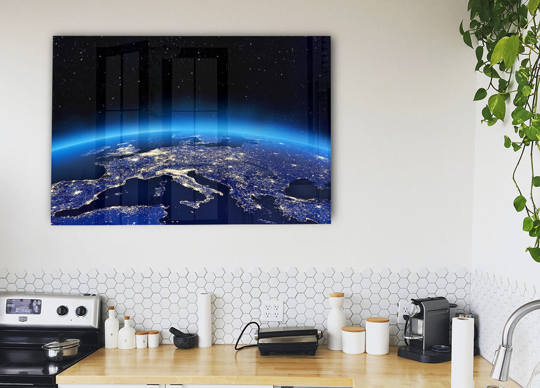 Acryldruck „Glow Of The Earth At Night“, UV-gedruckt auf 5 mm dickes Acrylglas. Wird mit allem geliefert, was Sie zum Aufhängen an die Wand brauchen.