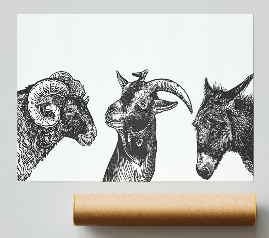 Our Goat Sheep Donkey Poster is printed 260 GSM premium lustre paper that offers vibrant colours and exceptional detail.