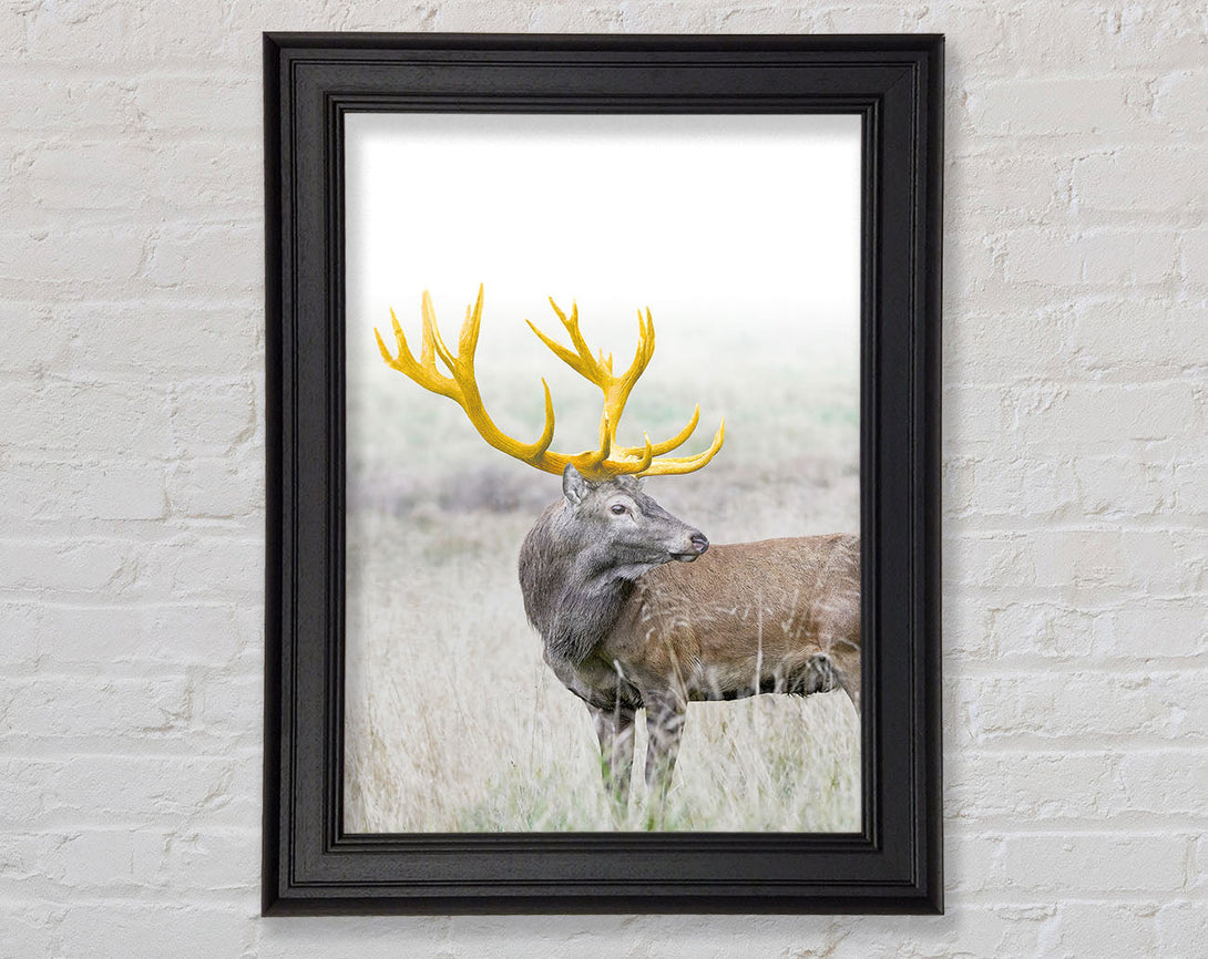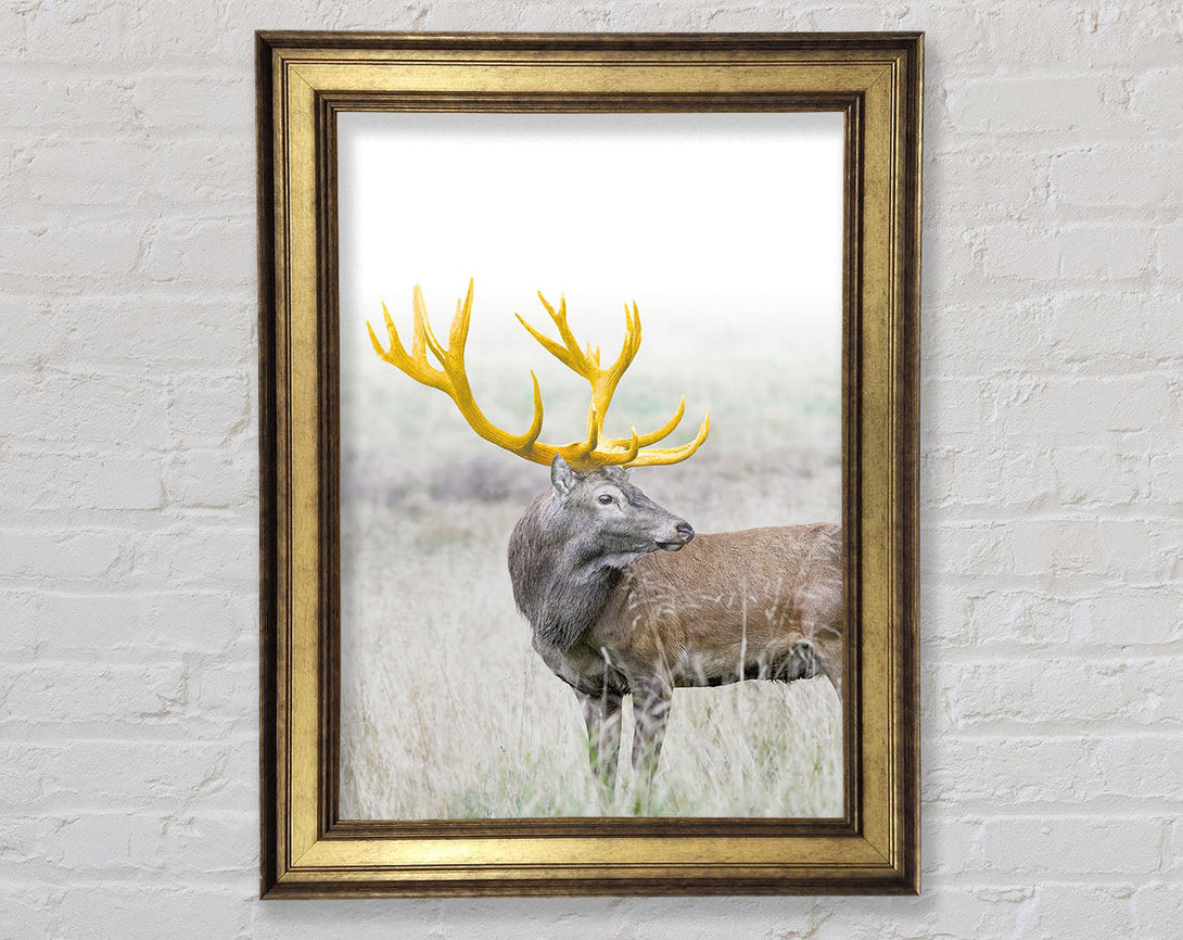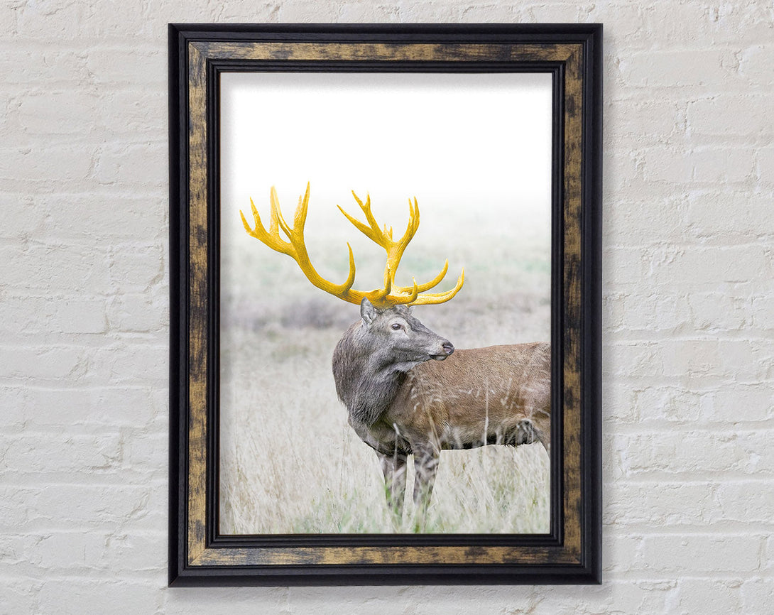 Gold Antler Deer Framed Print