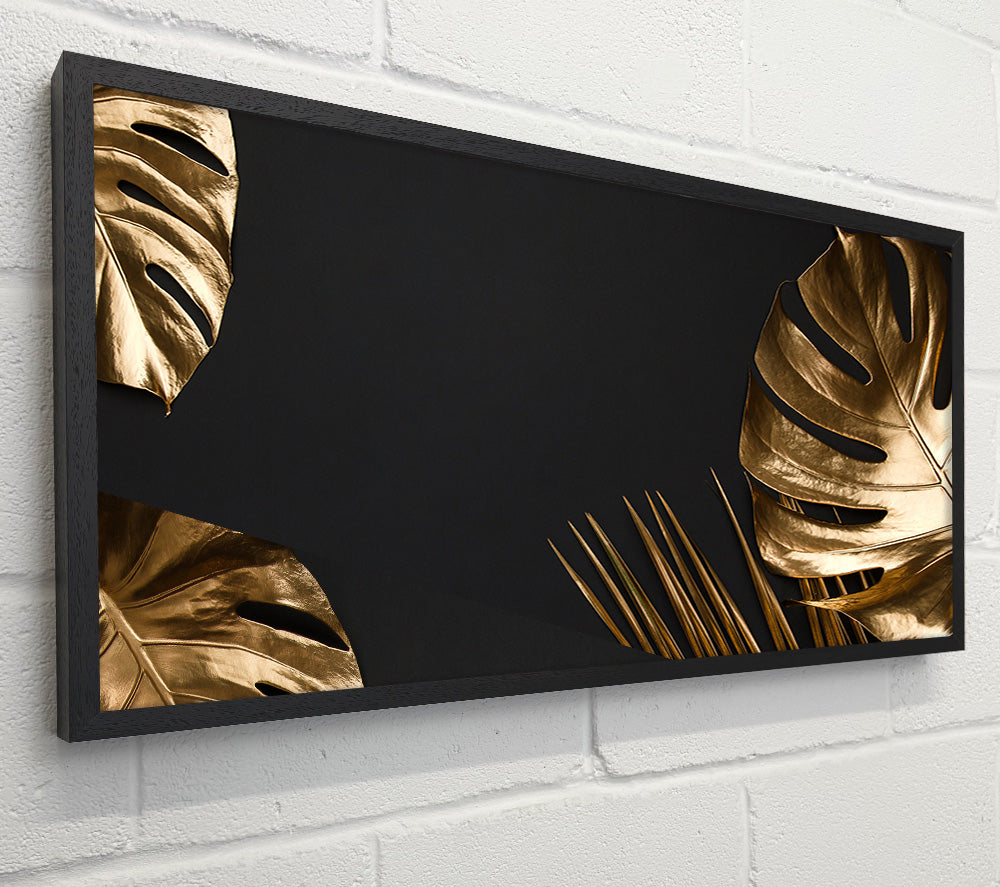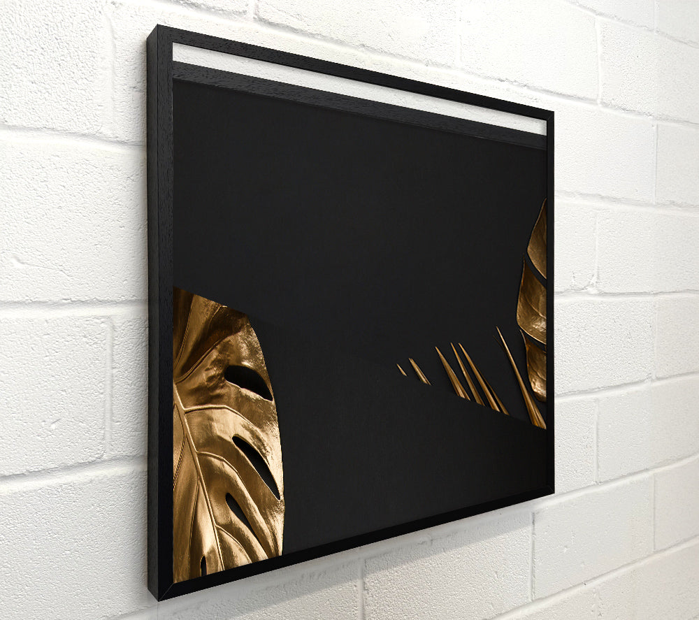 Quadratische Leinwand „Gold Leaf Palm“, gedruckt auf beschichteter Polyester-Leinwand. Auf einem 44 mm großen Kastenrahmen montiert, fertig zum Aufhängen.