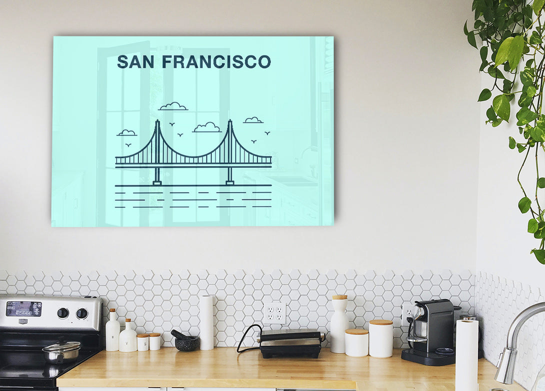 Acryldruck „Golden Gate Bridge 2“, UV-Druck auf 5 mm dickes Acrylglas. Wird mit allem geliefert, was Sie zum Aufhängen an die Wand benötigen.