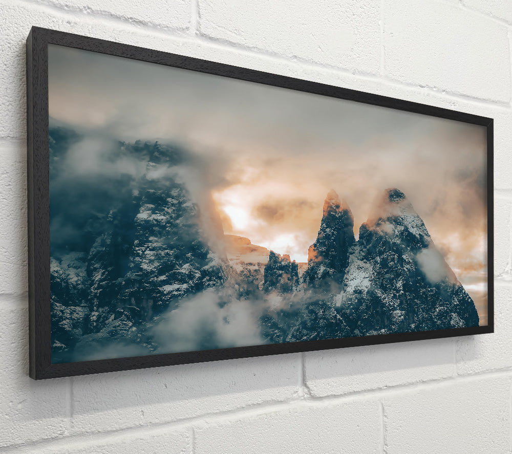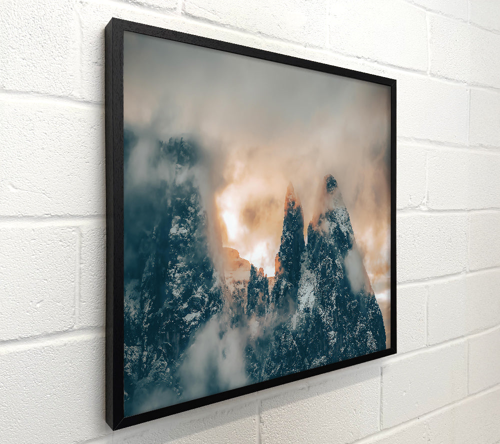 Golden Peaks Through Fog