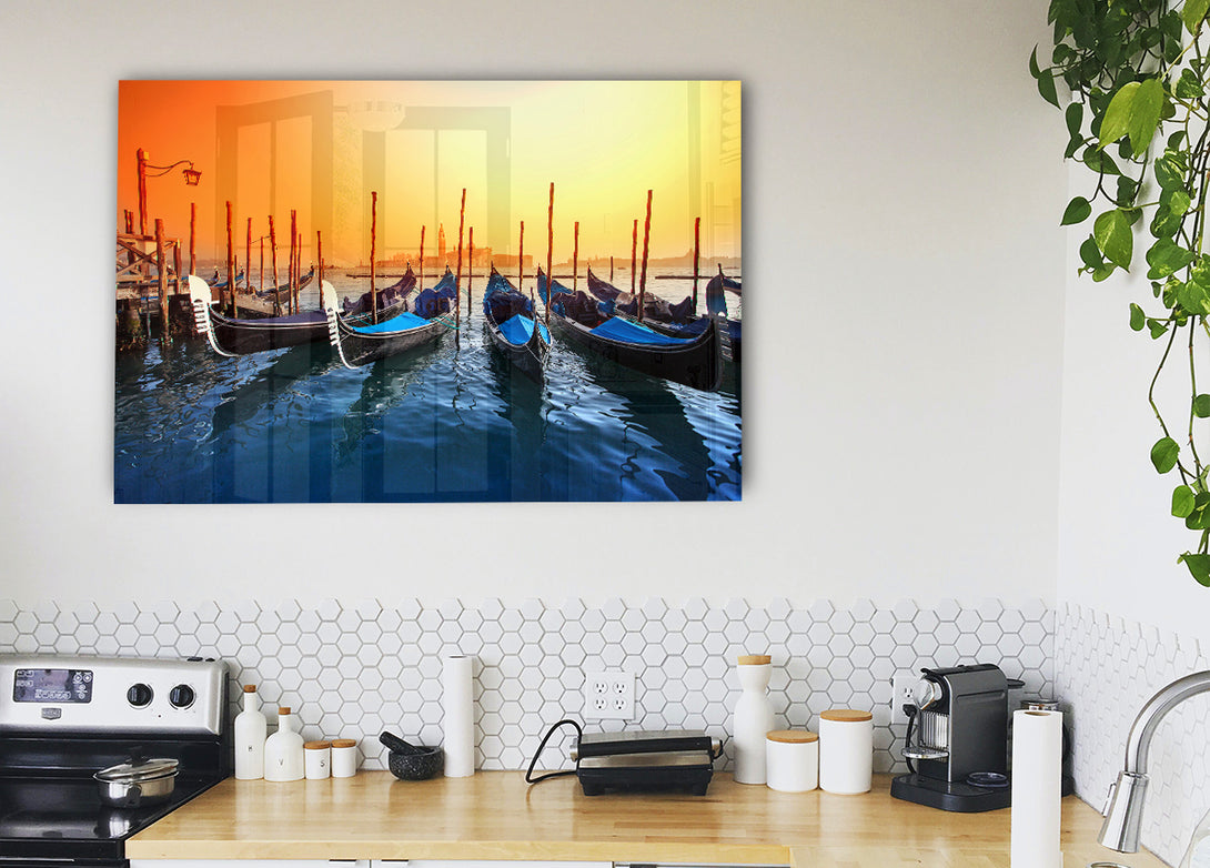 Acryldruck „Gondel Line Up 6“, UV-gedruckt auf 5 mm dickes Acrylglas. Wird mit allem geliefert, was Sie zum Aufhängen an die Wand brauchen.