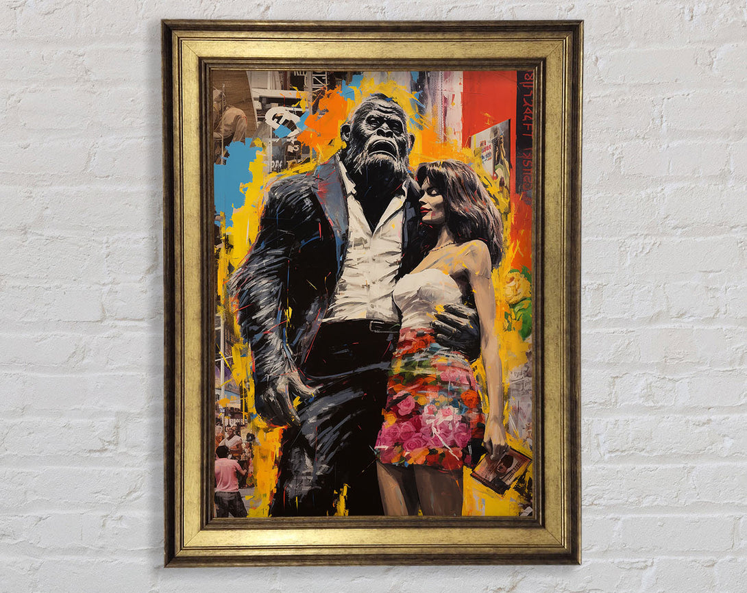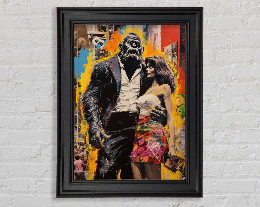 Gorilla In A Suit With Lady Framed Print