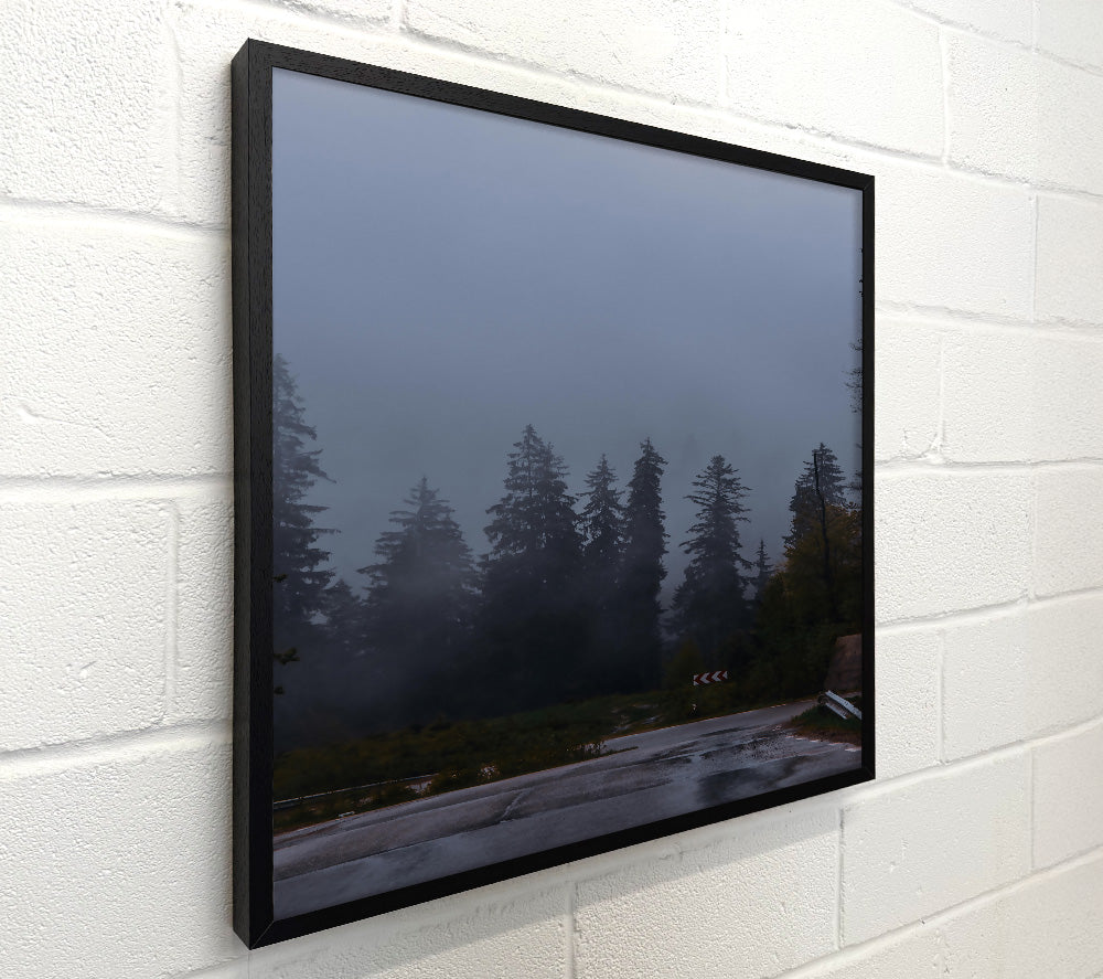 Gray Foggy Forest Road