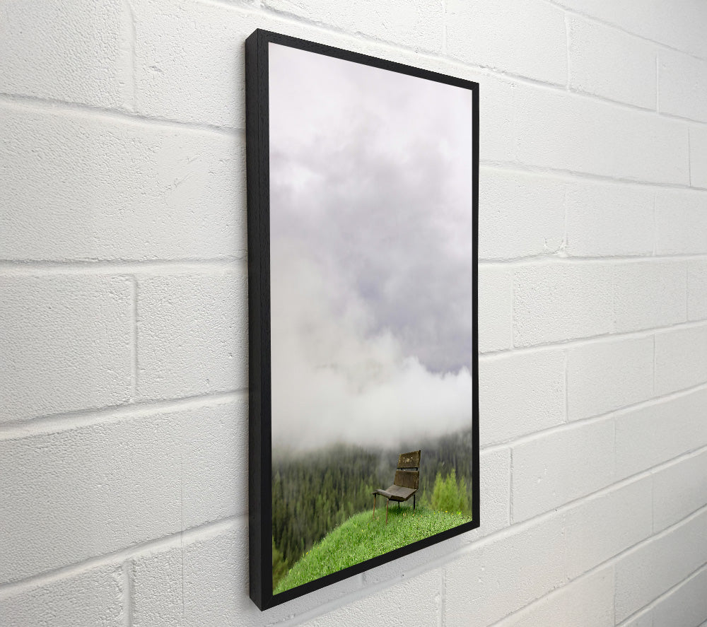 Green Bench In The Fog