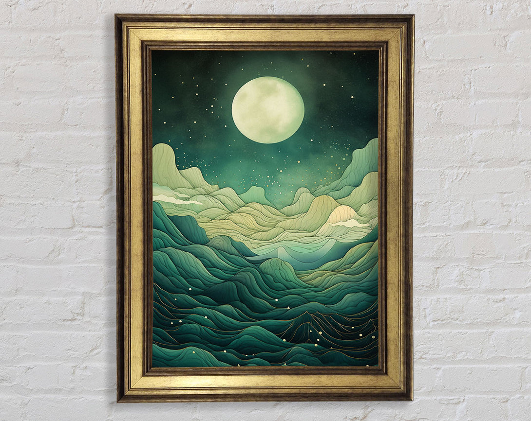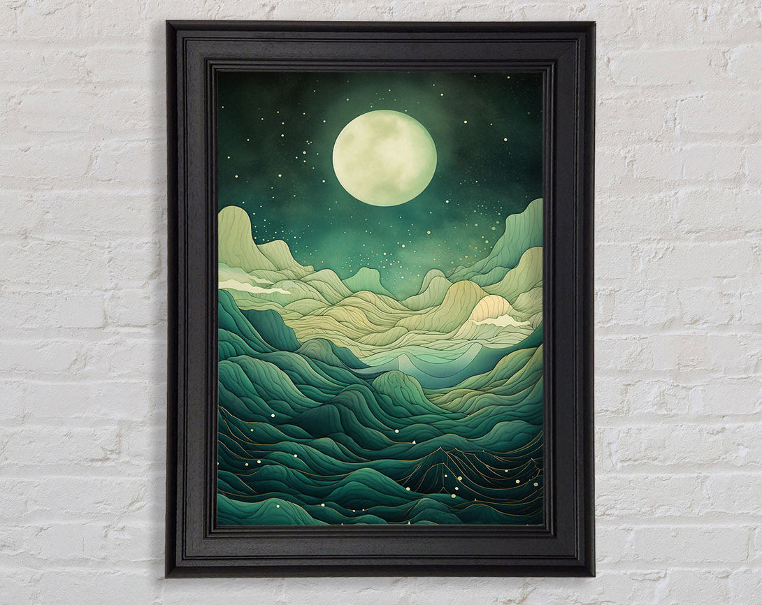 Green Dream Mountains Moon Framed Print