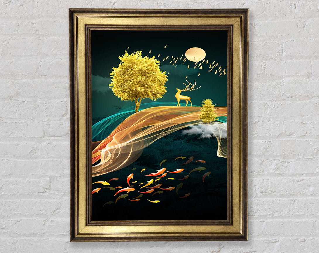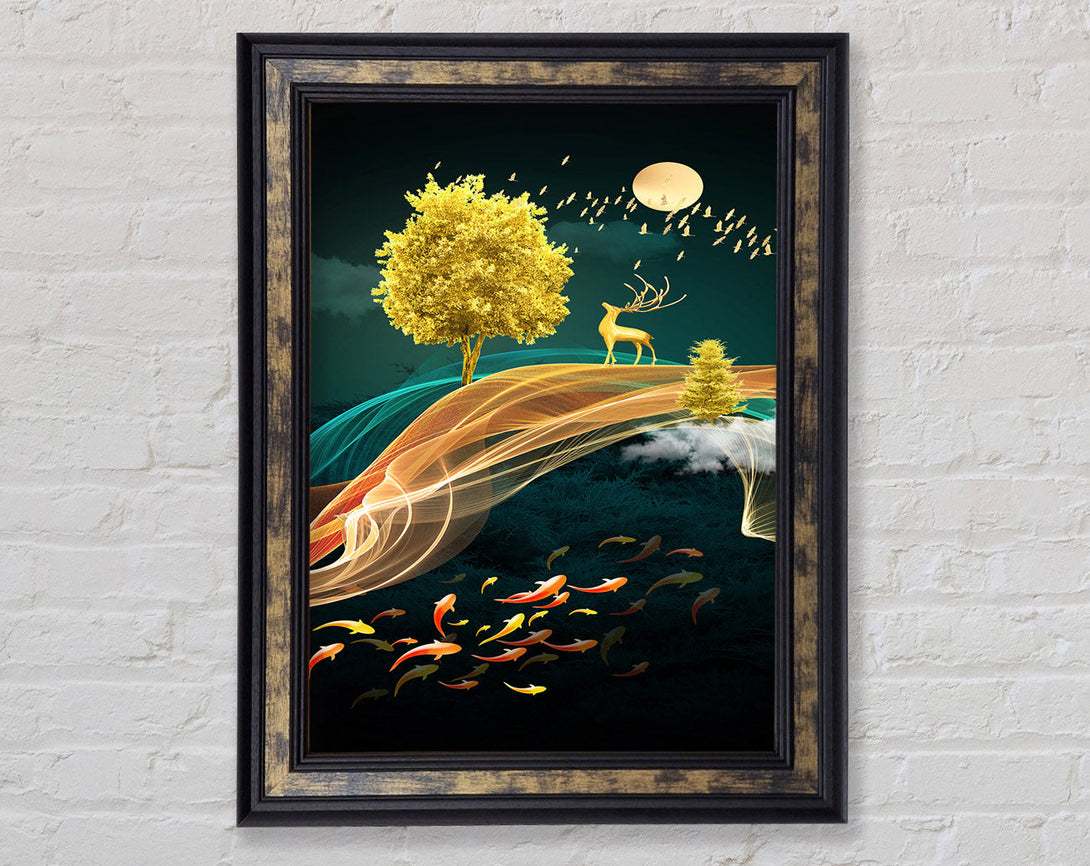 Green Gold Tree Framed Print