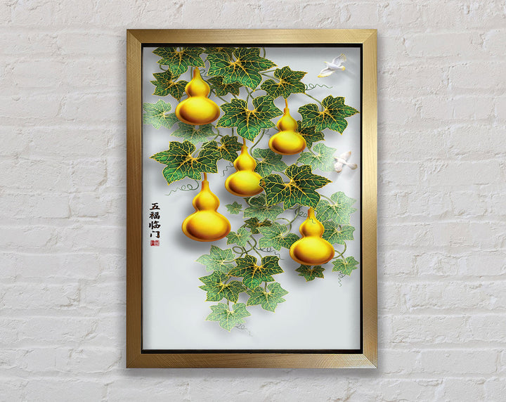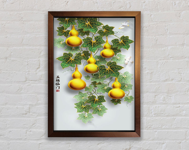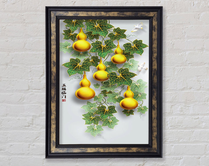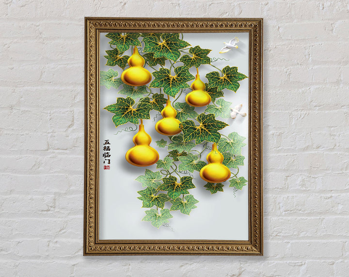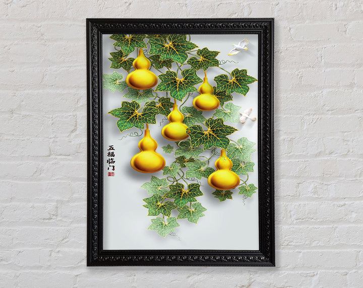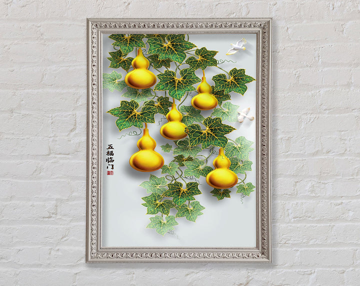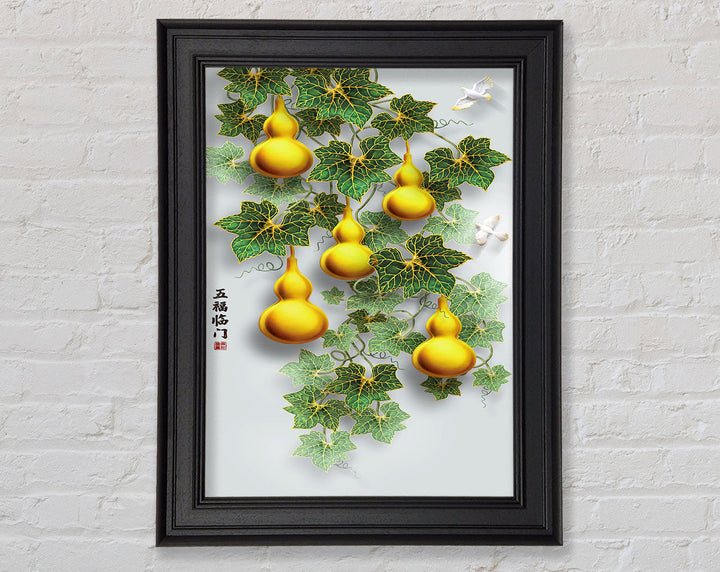 Green Leaves Yellow Ornaments Framed Print