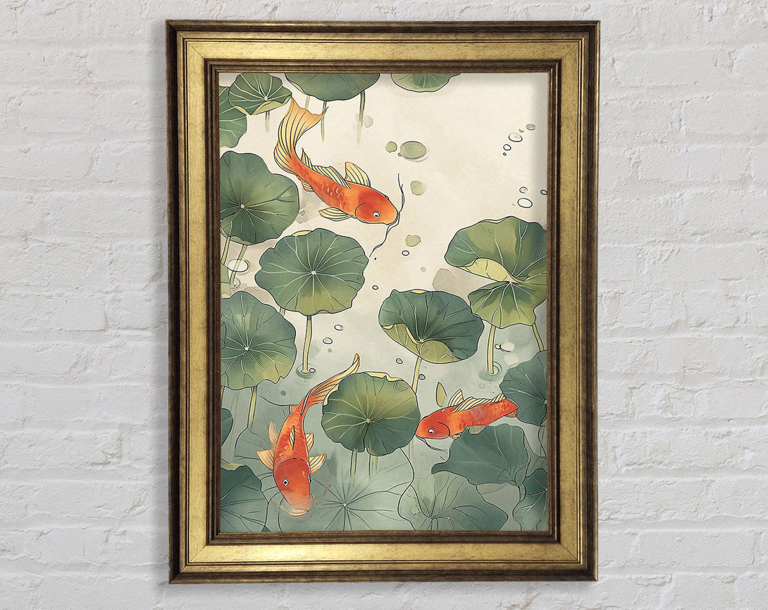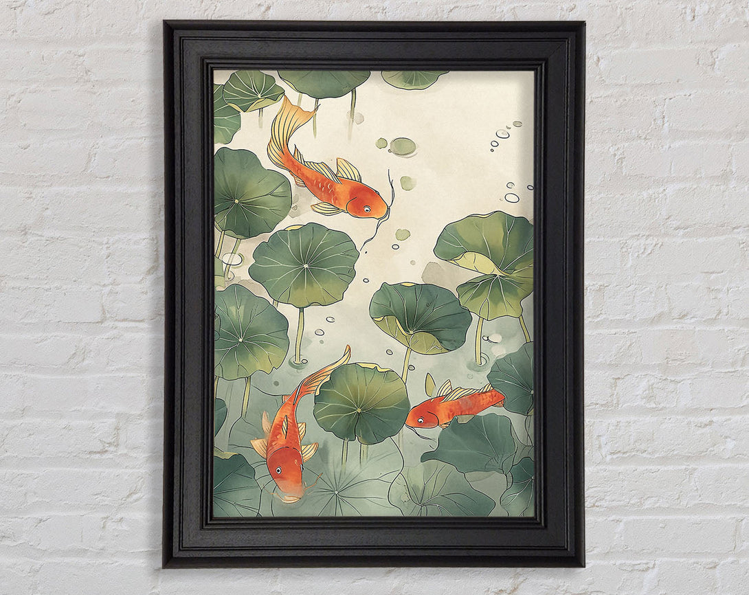 Green Lillies And Koi Framed Print