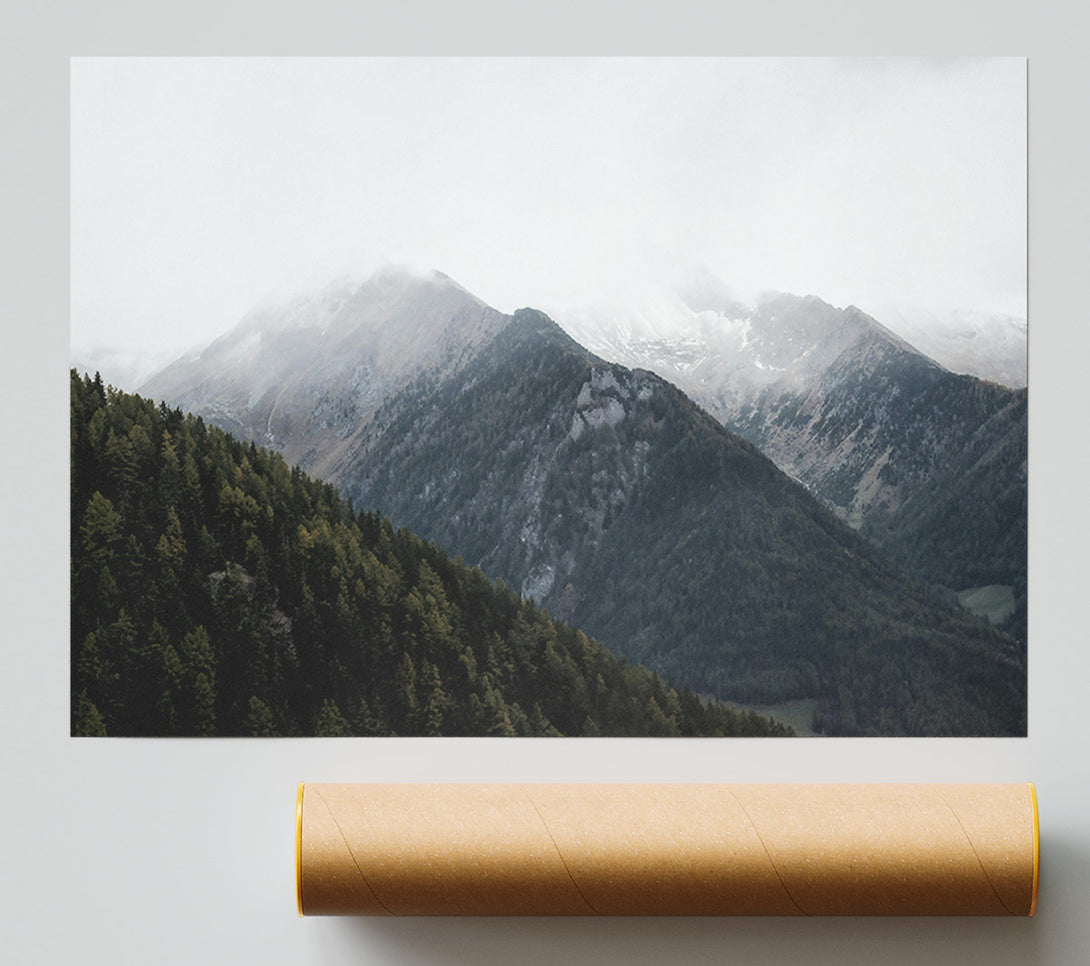 Our Green Mountains In Fog Poster is printed 260 GSM premium lustre paper that offers vibrant colours and exceptional detail.