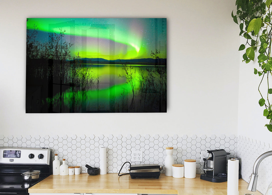 Acryldruck „Grüne Nordlichter“, UV-gedruckt auf 5 mm dickes Acrylglas. Wird mit allem geliefert, was Sie zum Aufhängen an Ihre Wand benötigen.