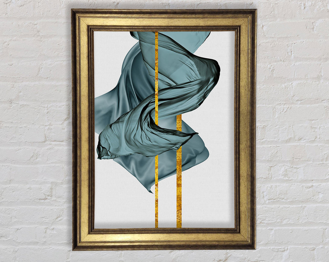 Green Swirl Gold Lines Framed Print