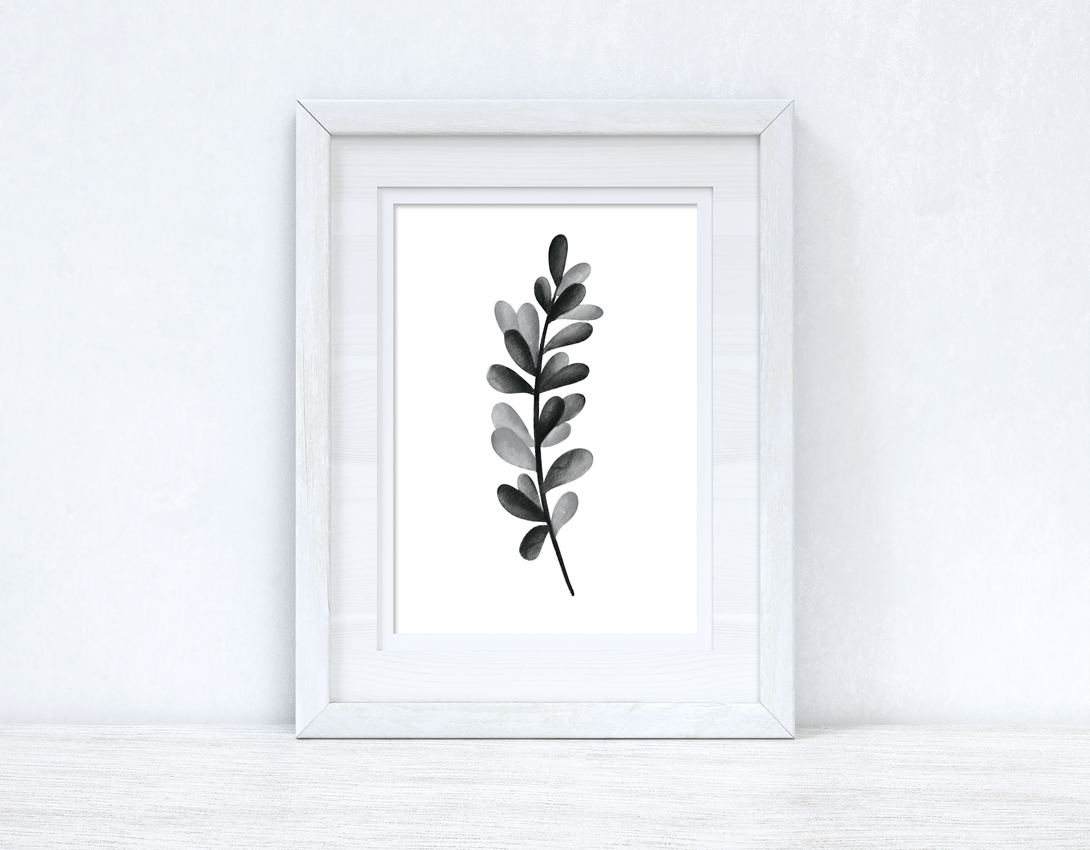 Grey Black Watercolour Leaf Bedroom Home Wall Decor Print
