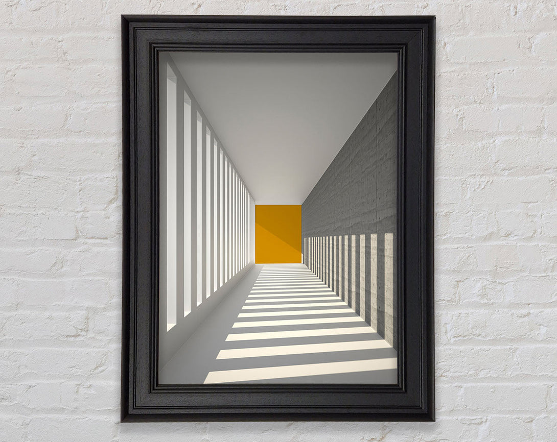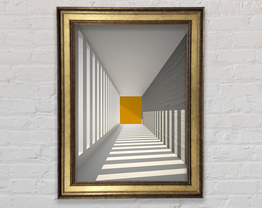 Grey Corridor With Gold Block Framed Print