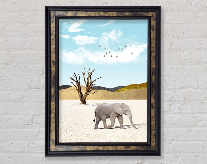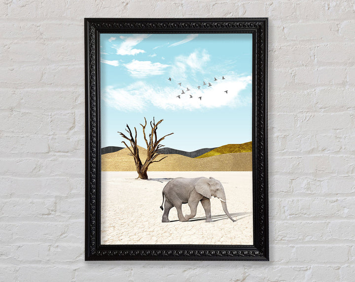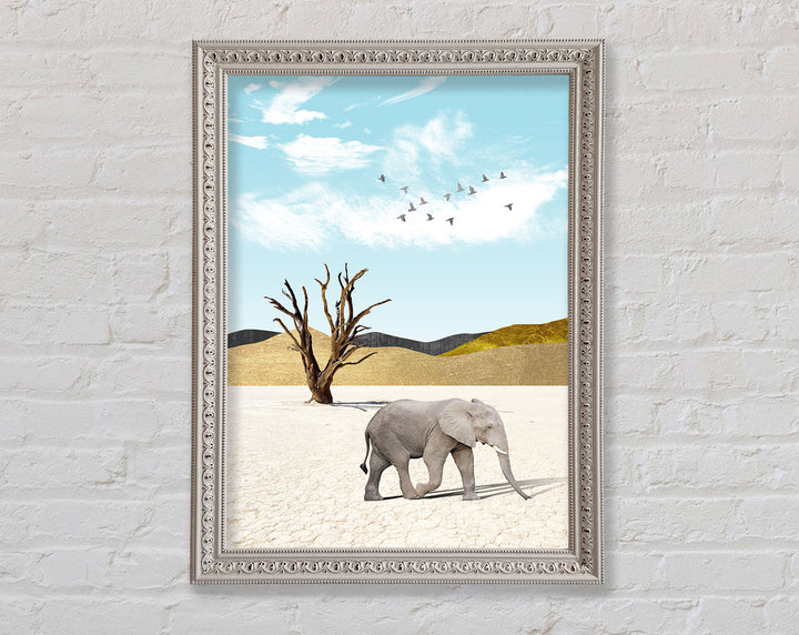 Grey Elephant In Dessert Framed Print