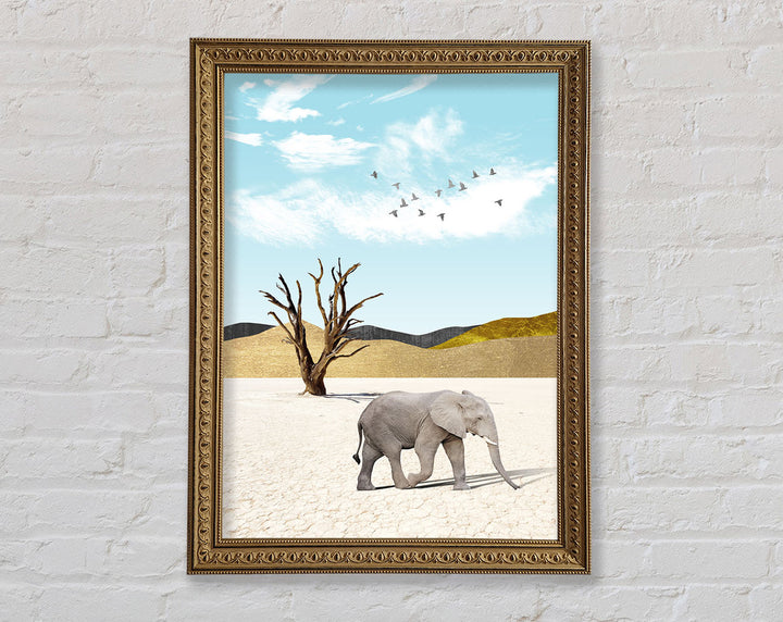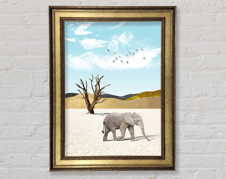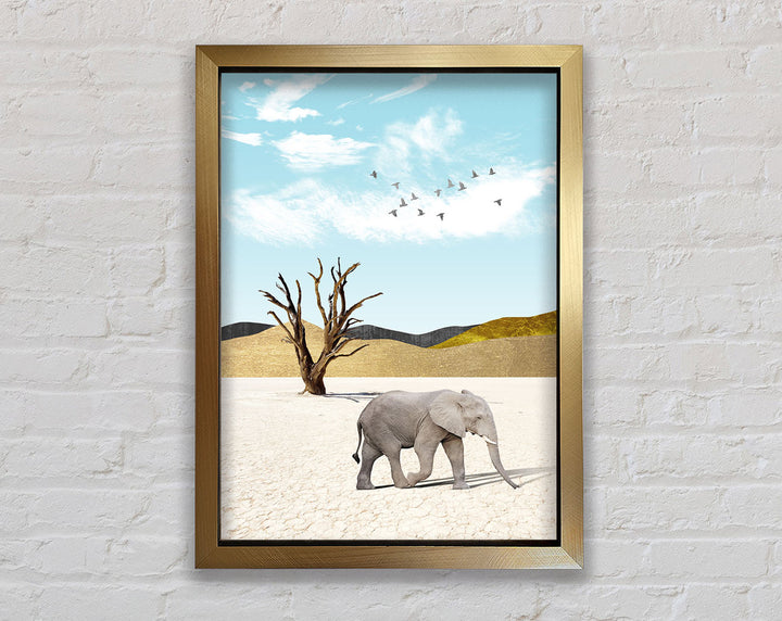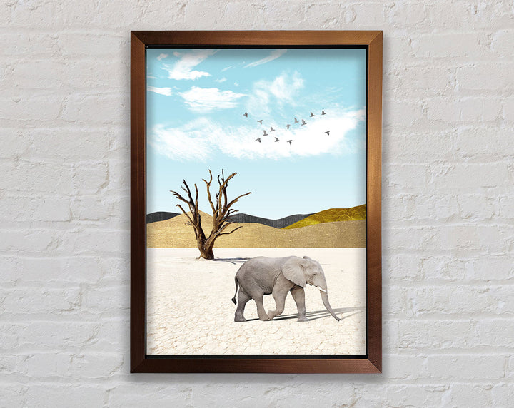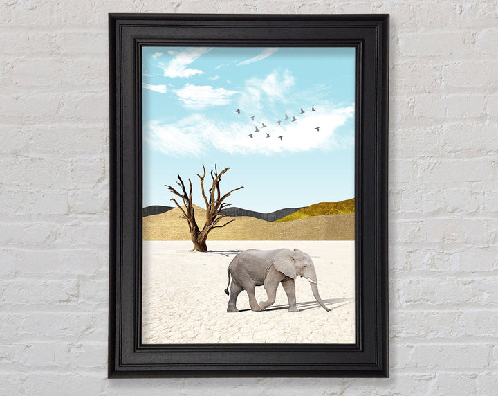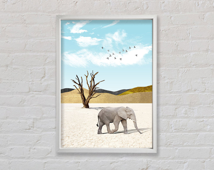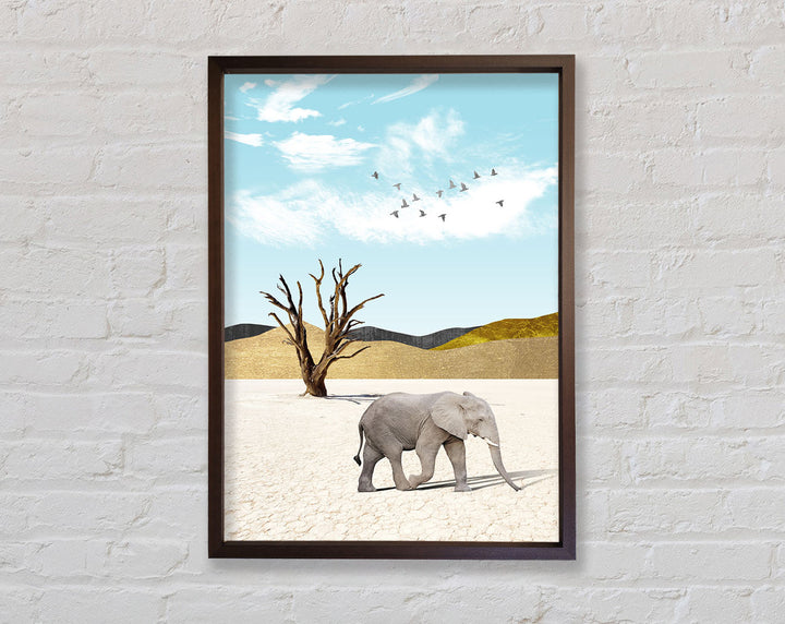 Add a touch of elegance to your space with the Grey Elephant In Desert Framed Print. This stunning piece of framed art captures the majestic beauty of an elephant roaming the serene desert landscape. Available in six sizes, from small to oversized, this print suits any room, whether you want a subtle accent or a bold statement. Choose from a variety of colors to perfectly match your decor. Each piece is handmade in the United Kingdom, ensuring top-quality craftsmanship. Ready to hang, this framed print makes it easy to elevate your home or office decor instantly. Enjoy the blend of artistry and nature with this captivating framed art.
