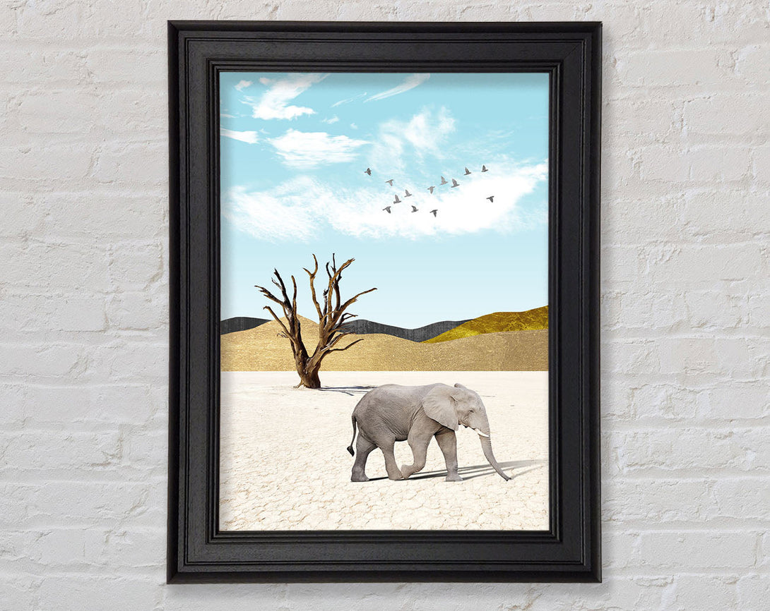 Grey Elephant In Dessert Framed Print