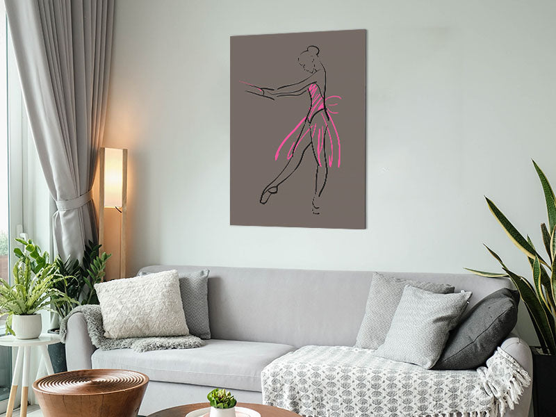 Grau-rosa Ballerina 1 Gedruckt auf gebürstetem Aluminium-Dibond. Eine moderne Art, Kunst zu präsentieren und leicht zu pflegen.