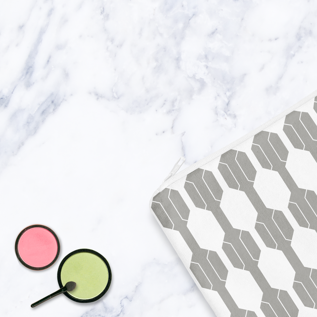 Grey & White Make Up Bag - Cosmetic Bag - Travel Pouch - Handmade Toiletry Bag - Contemporary Geometric Beauty Case
