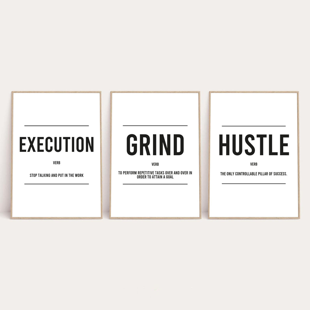 Grind Hustle Execution Inspirational Wall Decor Quote Print Set Of 3