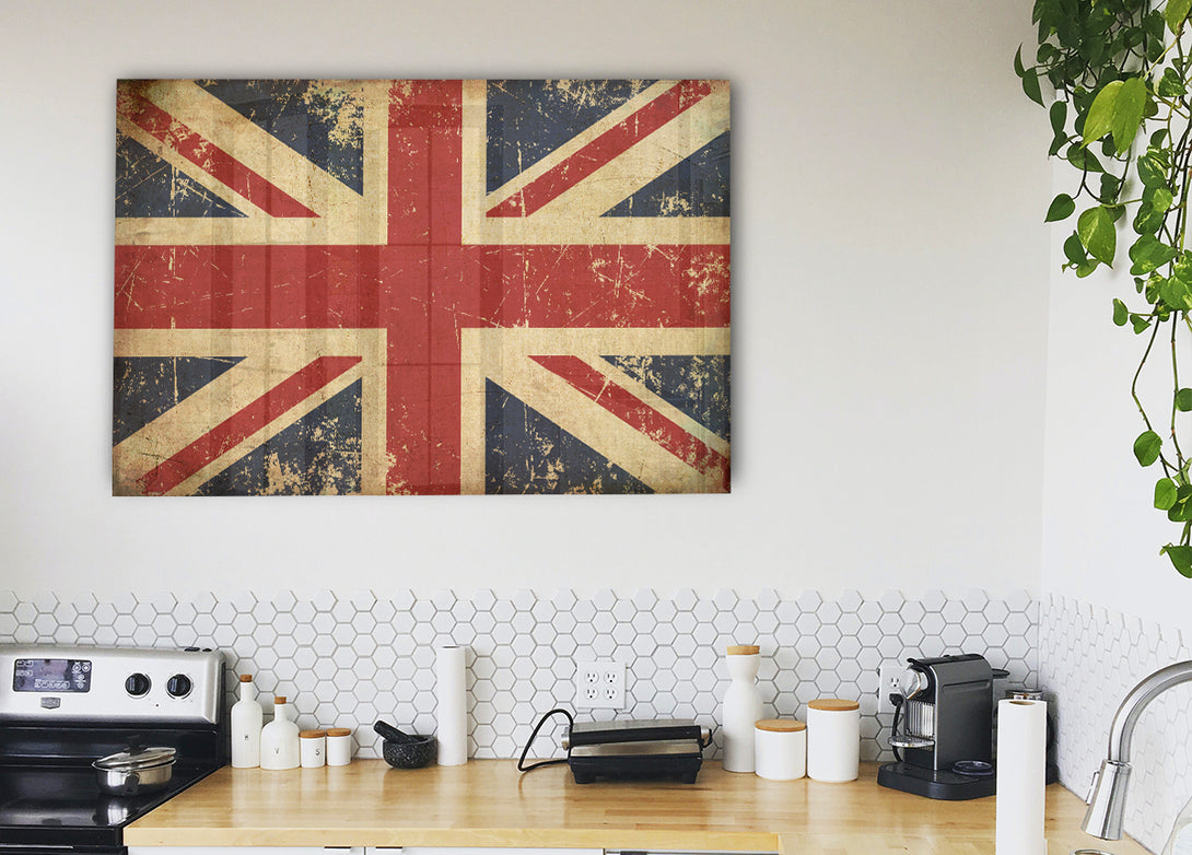 Grunge Union Jack Erosion-Acryldruck, UV-gedruckt auf 5 mm dickes Acrylglas. Wird mit allem geliefert, was Sie zum Aufhängen an die Wand brauchen.