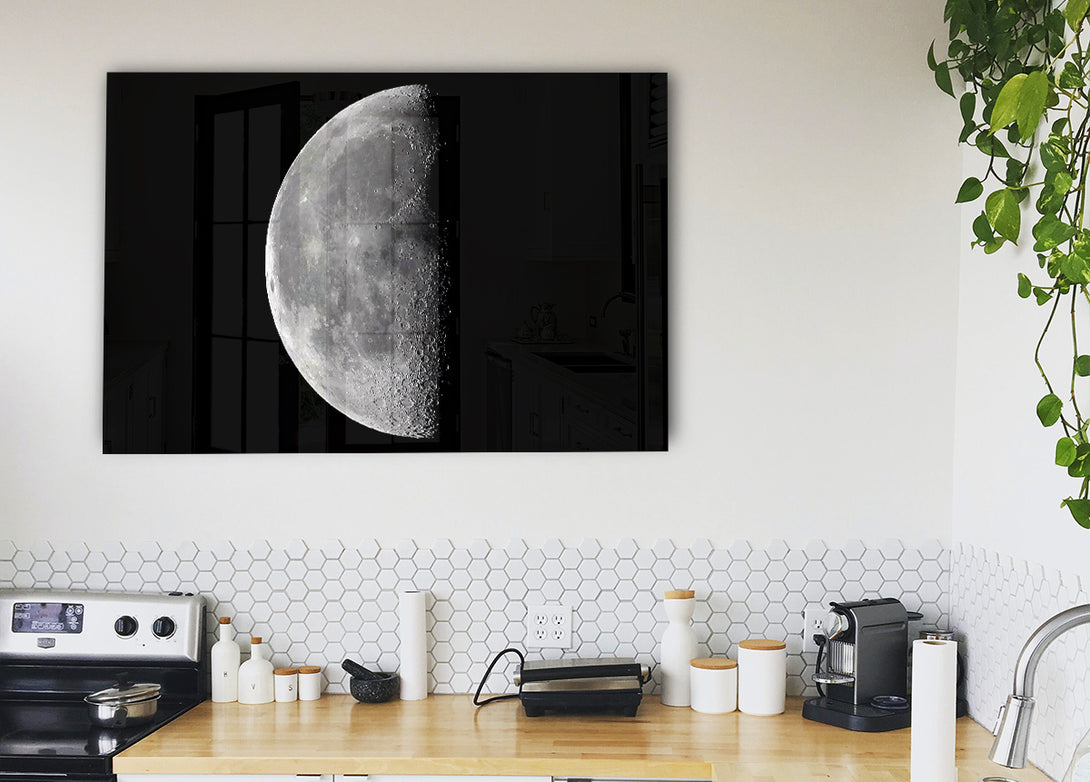 Halbmond-Acryldruck, UV-gedruckt auf 5 mm dickes Acrylglas. Wird mit allem geliefert, was Sie zum Aufhängen an Ihrer Wand benötigen.