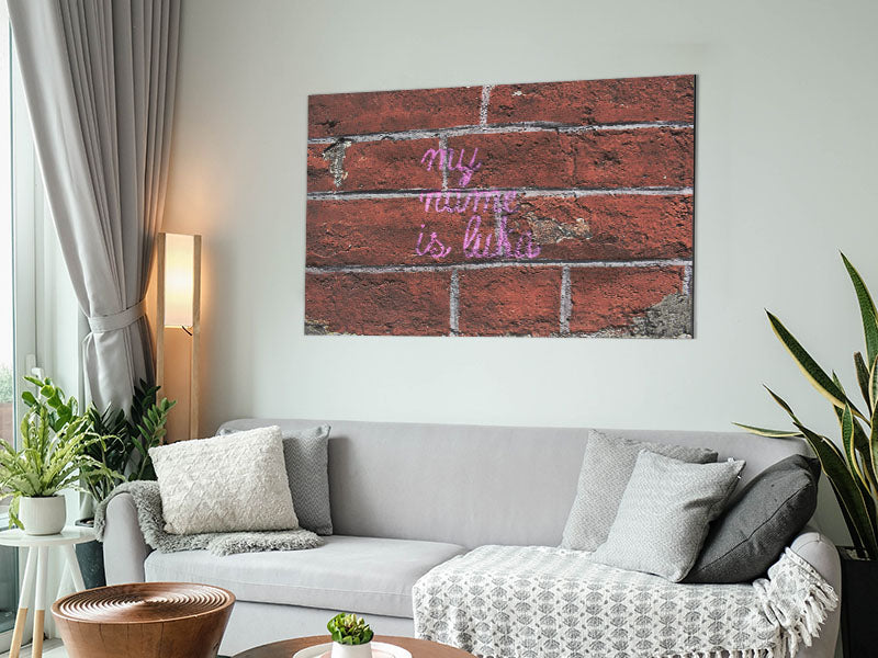 Handgezeichnete Straßenkunst, gedruckt auf gebürstetem Aluminium-Dibond. Eine moderne Art, Kunst zu präsentieren und leicht zu pflegen.