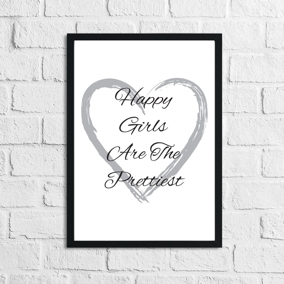 Happy Girls Are The Prettiest Heart Grey Inspirational Wall Decor Quote Print