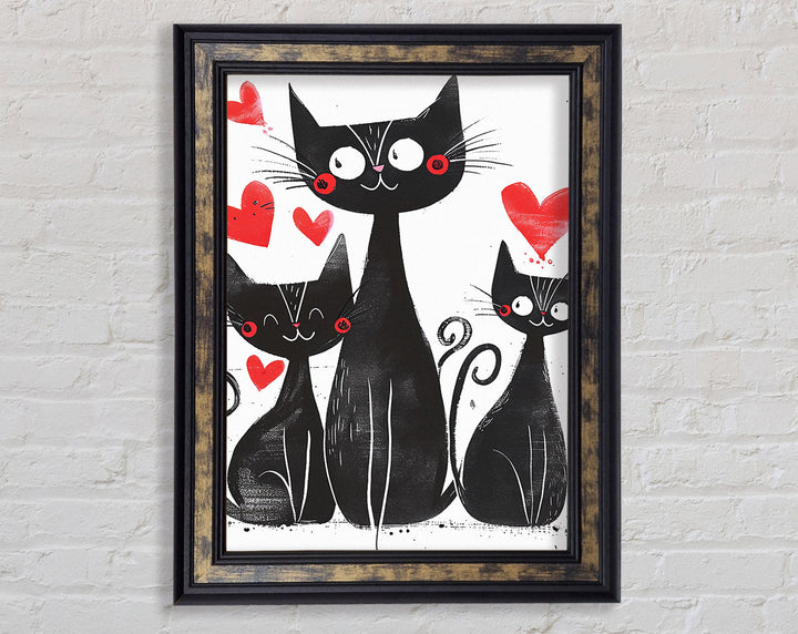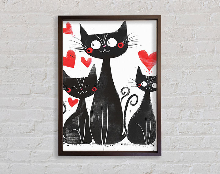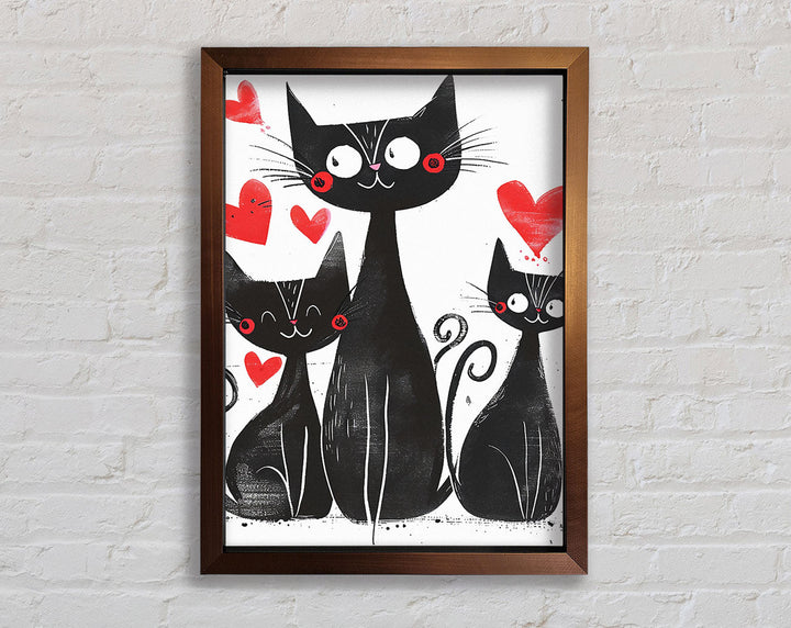 Happy Love Walnut Cats Framed Print