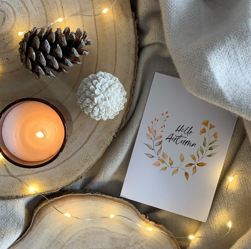 Hello Autumn Half Watercolour Wreath Autumn Seasonal Wall Home Decor Print