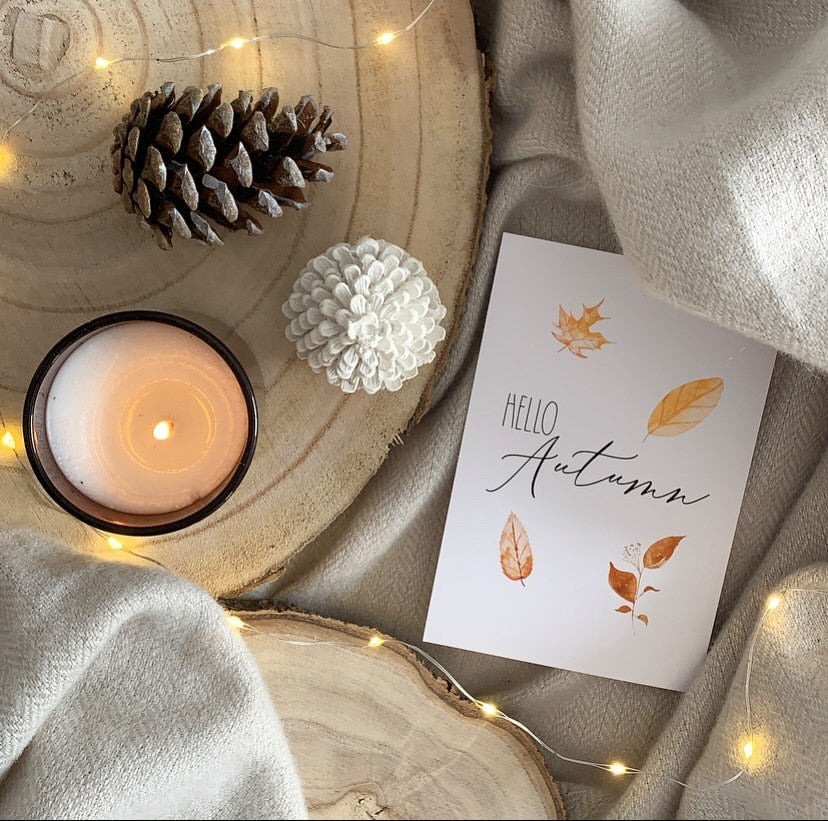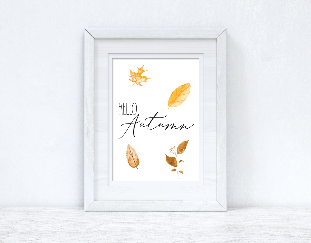 Hello Autumn Leaves New Autumn Seasonal Wall Home Decor Print