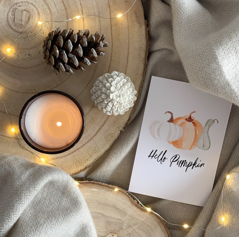 Hello Pumpkin Watercolour Pumpkin Trio Autumn Seasonal Wall Home Decor Print
