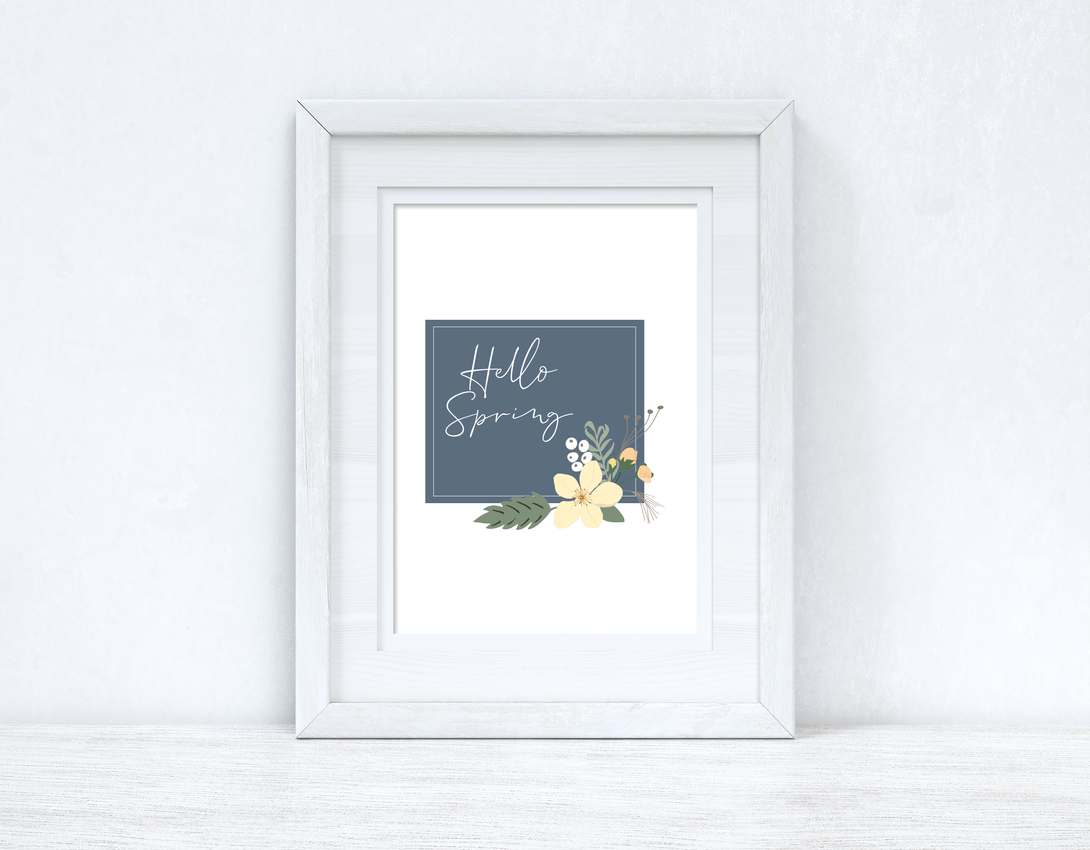 Hello Spring Floral Blue Spring Seasonal Wall Home Decor Print