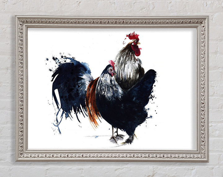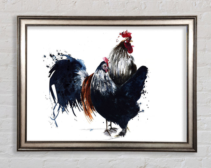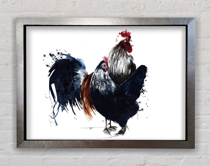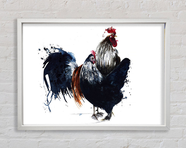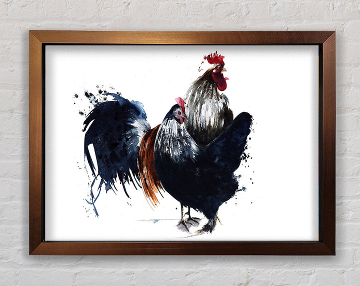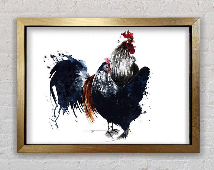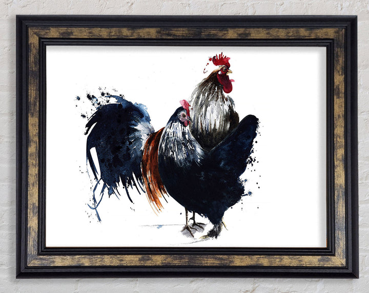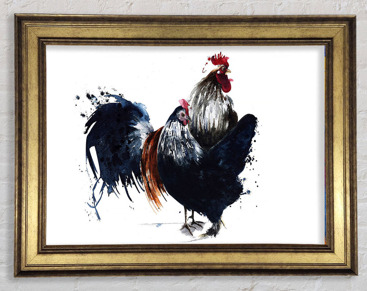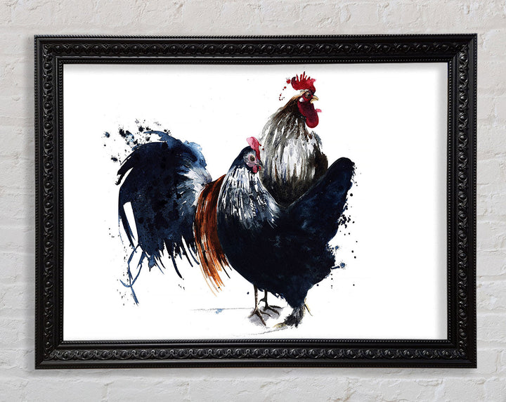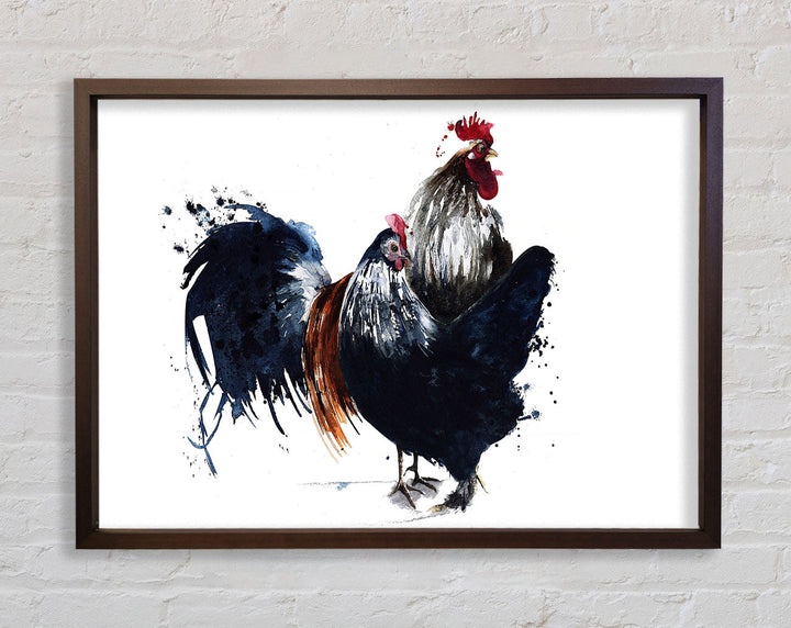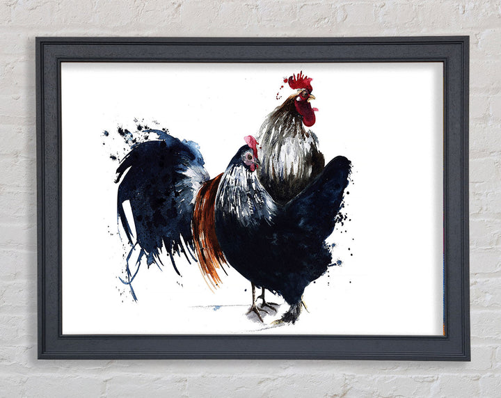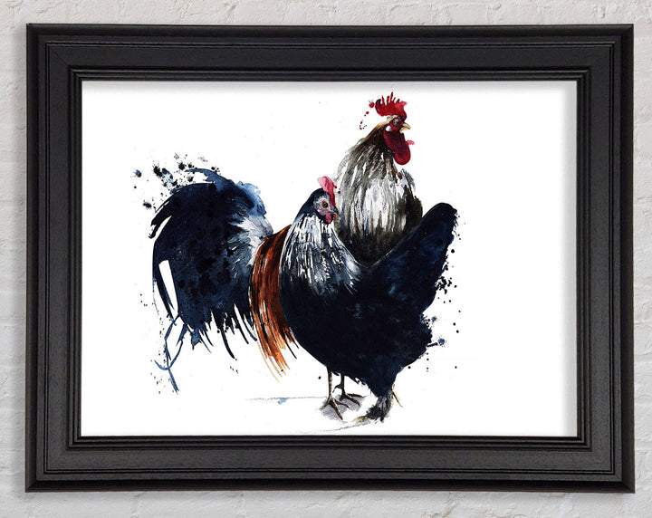 Gerahmter Druck „Hen Duo“, erhältlich in mehreren Rahmenfarben. Fertig zum Aufhängen aus der Schachtel und handgefertigt im Vereinigten Königreich.