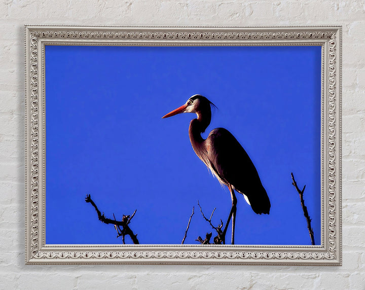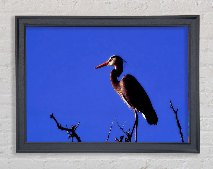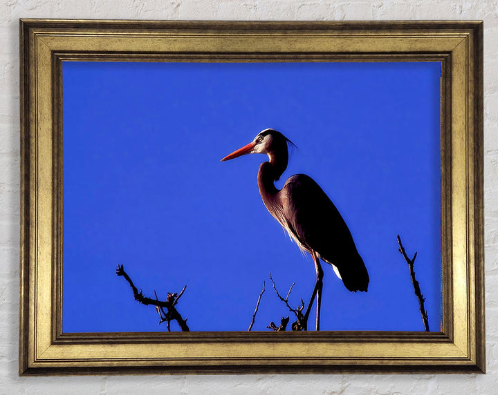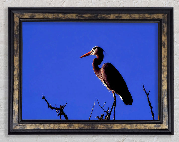Gerahmter Druck „Heron Watch“, erhältlich in mehreren Rahmenfarben. Fertig zum Aufhängen aus der Schachtel und handgefertigt im Vereinigten Königreich.