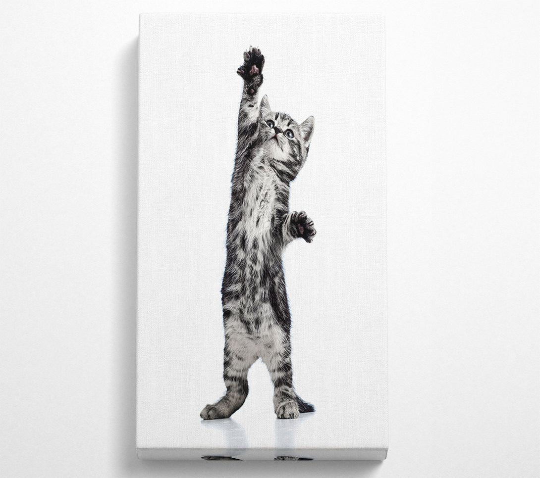 Brighten up your wall with the High Five Cat Canvas Print! This charming artwork features a playful cat reaching out for a high five, sure to bring a smile to anyone's face. Available in 5 sizes, from small to oversized, it fits perfectly in any space, whether it's a cozy nook or a grand living room. The high-quality canvas material ensures vibrant colors and lasting durability. Easy to hang, this delightful print adds a touch of fun and personality to your home decor. Perfect for cat lovers or anyone looking to add a lively touch to their wall, the High Five Cat Canvas Print is a must-have.
