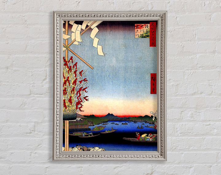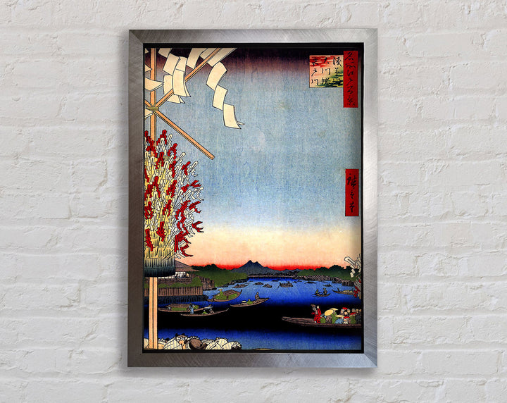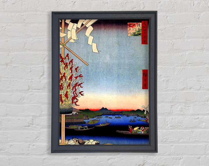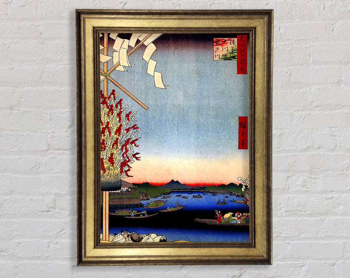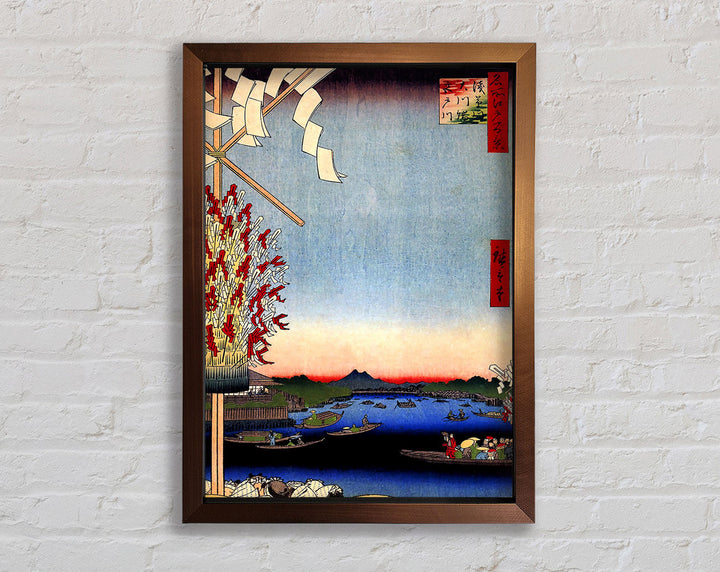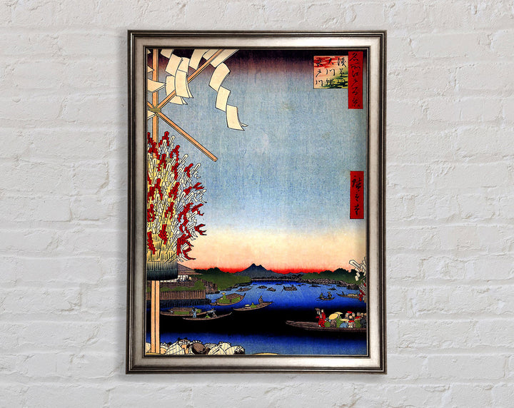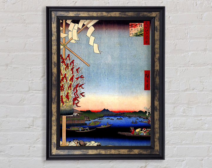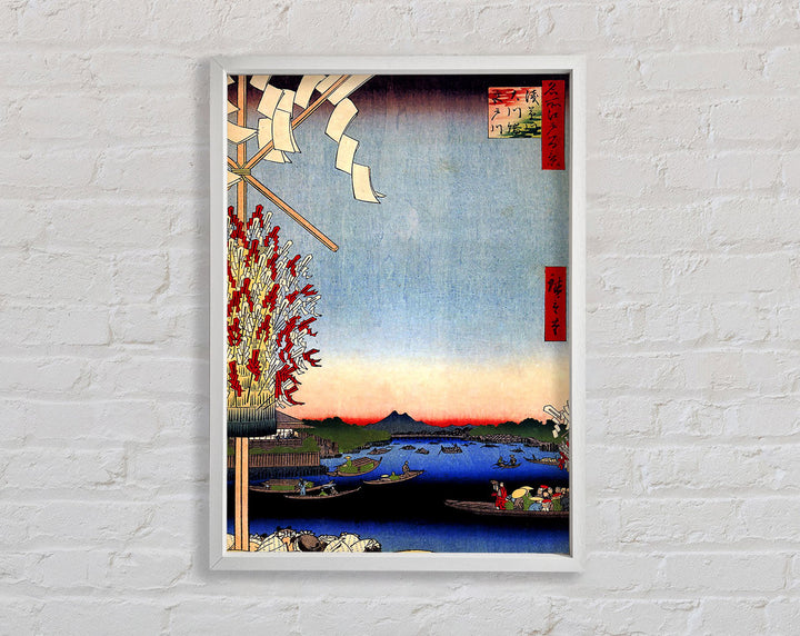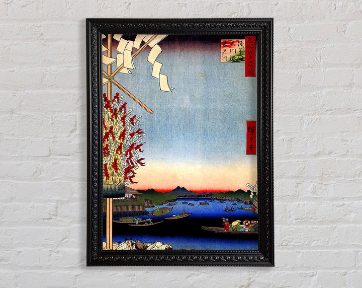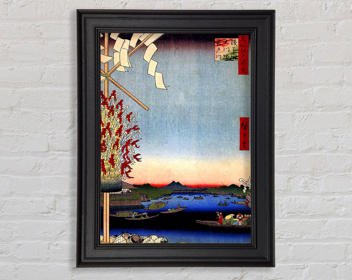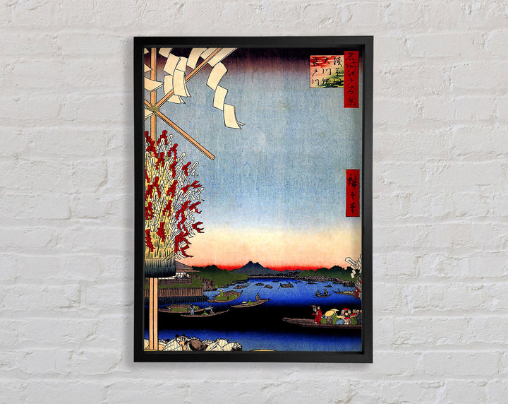 Gerahmter Druck „Hiroshige Asakusa River“, erhältlich in mehreren Rahmenfarben. Fertig zum Aufhängen aus der Schachtel und handgefertigt im Vereinigten Königreich.