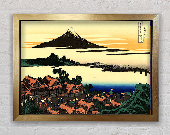 Gerahmter Druck „Hokusai Dawn At Isawa In The Kai Province“, erhältlich in mehreren Rahmenfarben. Fertig zum Aufhängen aus der Schachtel und handgefertigt im Vereinigten Königreich.
