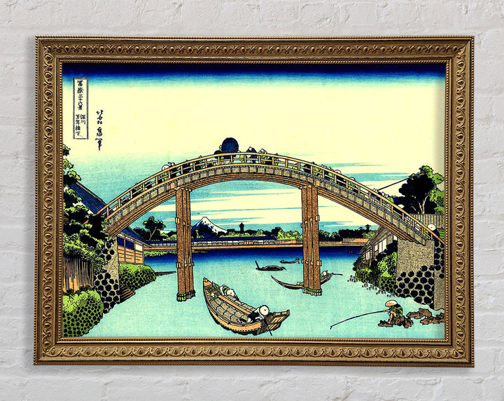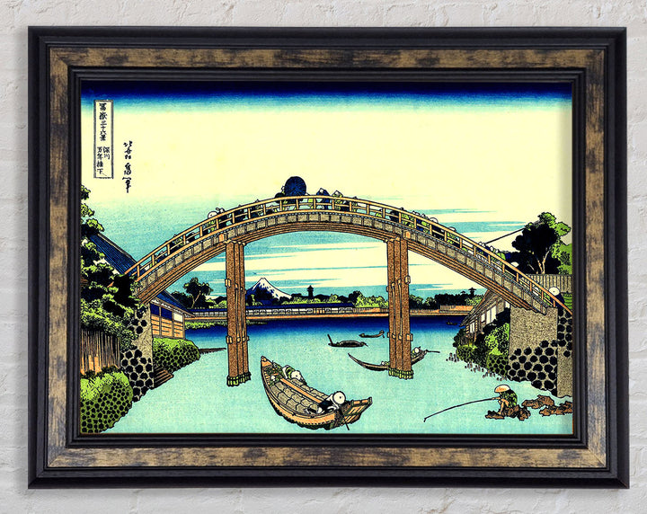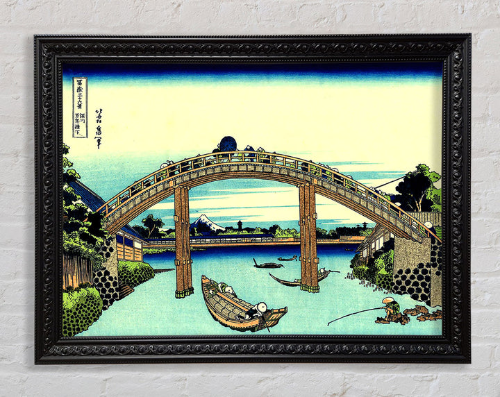 Gerahmter Druck „Hokusai Fuji gesehen durch die Mannenbrücke“, erhältlich in mehreren Rahmenfarben. Fertig zum Aufhängen aus der Schachtel und handgefertigt im Vereinigten Königreich.