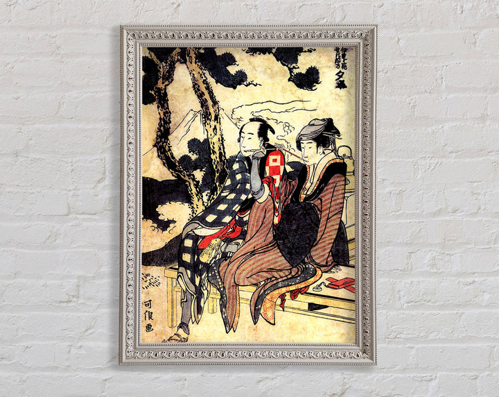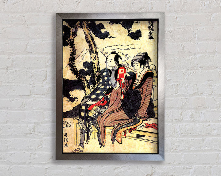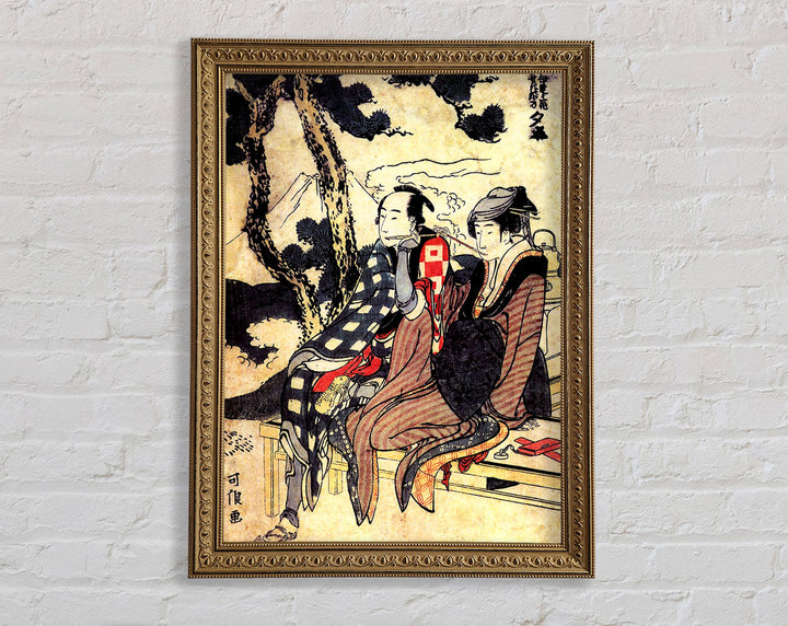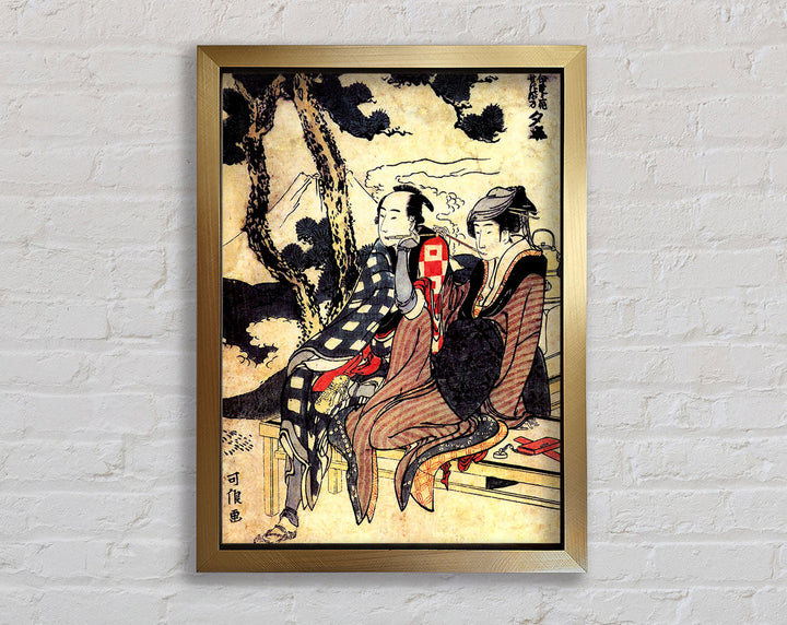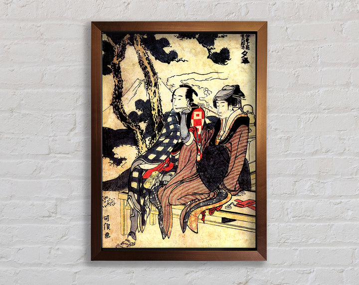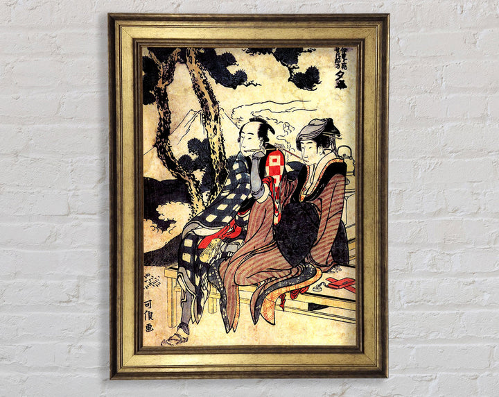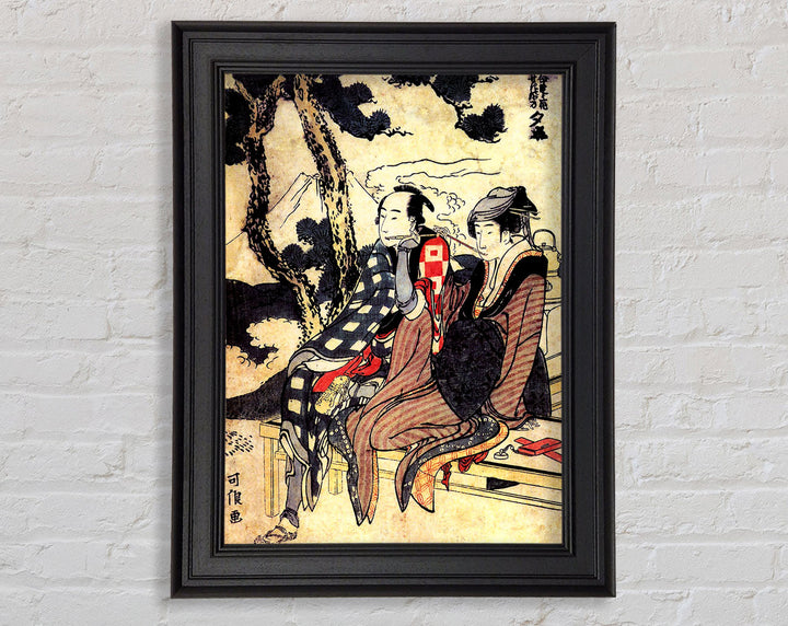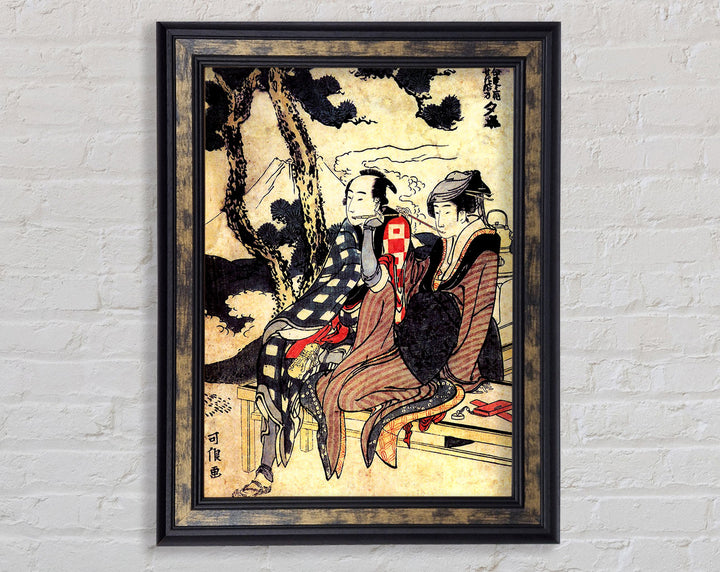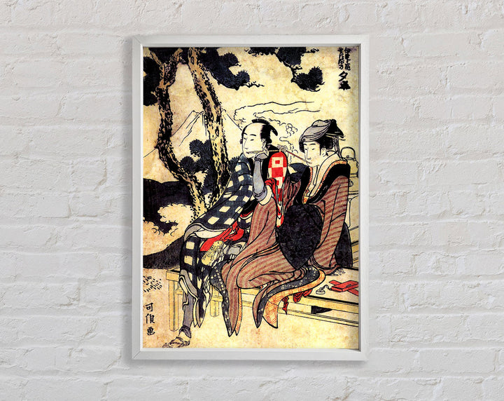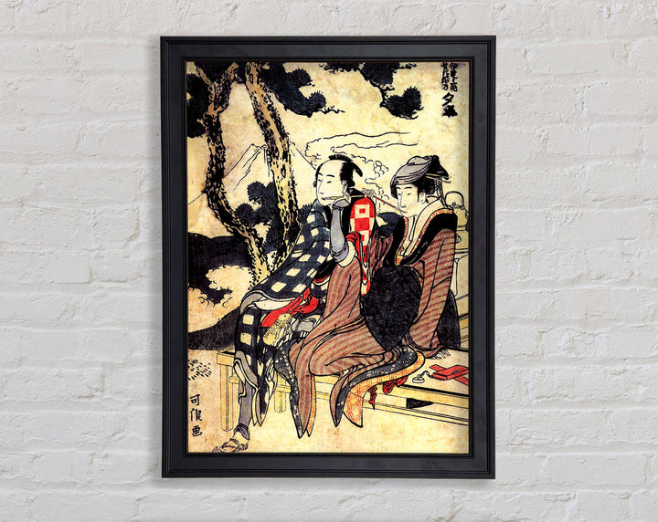 Gerahmter Druck „Hokusai Traveling Couple“, erhältlich in mehreren Rahmenfarben. Fertig zum Aufhängen aus der Schachtel und handgefertigt im Vereinigten Königreich.