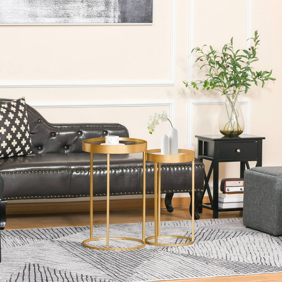 Homcom Set Of 2 Nesting Coffee Tables With Gold Metal Base