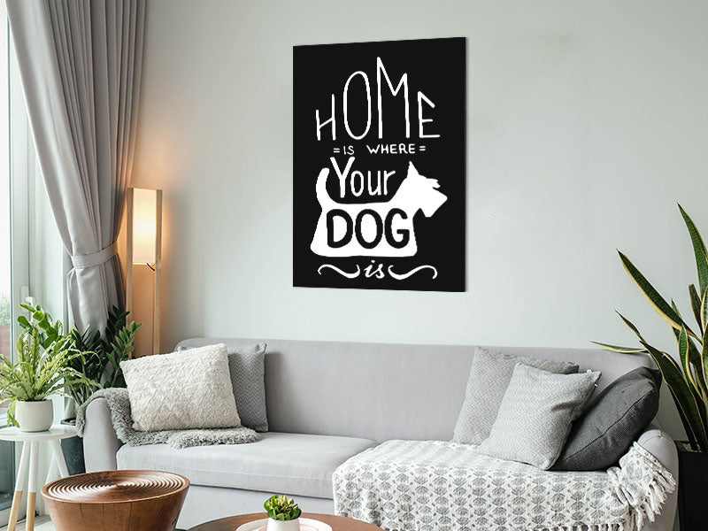 „Home Is Where Your Dog Is“ 1 Gedruckt auf gebürstetem Aluminium-Dibond. Eine moderne Art, Kunst zu präsentieren und leicht zu pflegen.