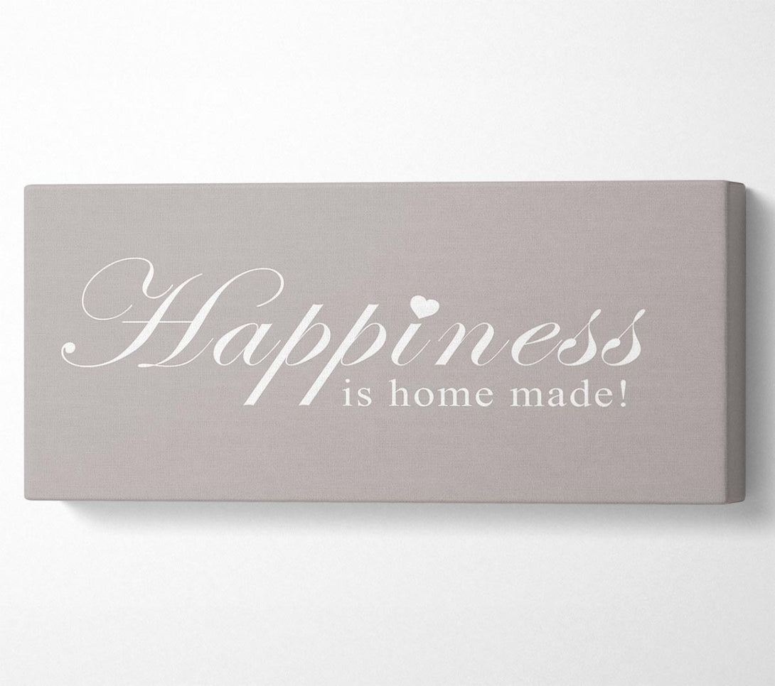 Home-Zitat „Happiness Is Home Made“ – Beige Leinwand, gedruckt auf beschichteter Polyester-Leinwand. Auf einem 44 mm großen Kastenrahmen montiert, fertig zum Aufhängen.