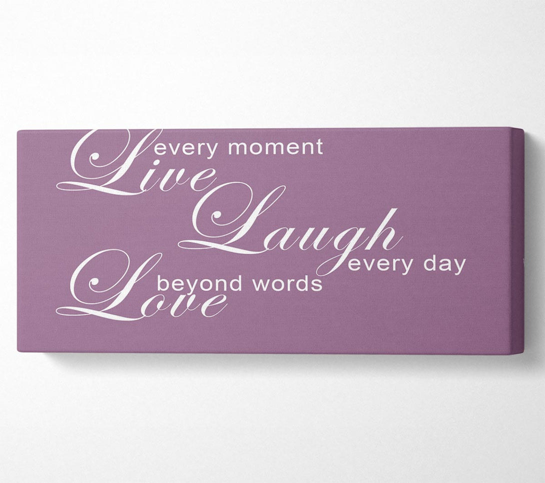 Home Quote Live Every Moment 3 Dusty Pink-Leinwand, gedruckt auf beschichteter Polyester-Leinwand. Auf einem 44 mm großen Kastenrahmen montiert, fertig zum Aufhängen.