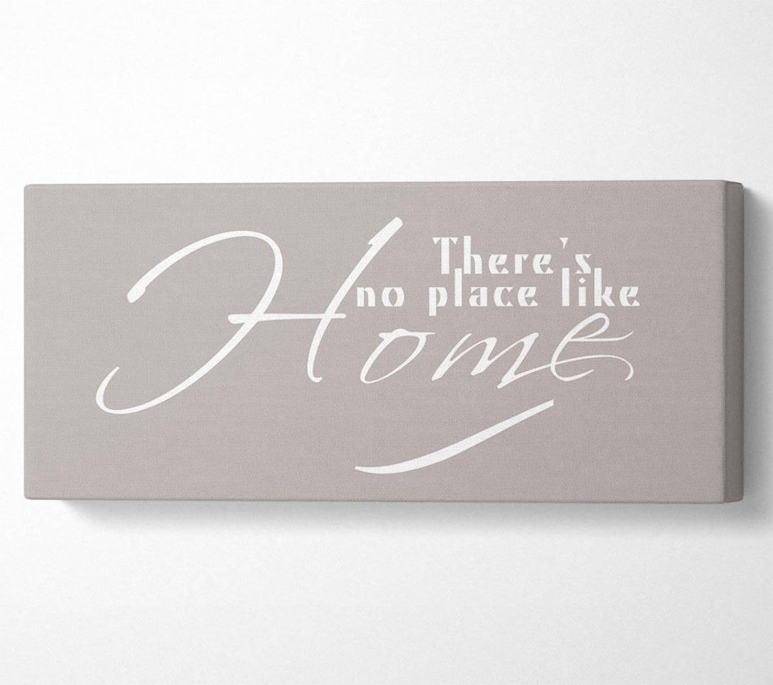 Home-Zitat „Theres No Place Like Home“ (Es gibt keinen Ort wie Zuhause). Beige Leinwand, gedruckt auf beschichteter Polyester-Leinwand. Auf einem 44 mm großen Kastenrahmen montiert, fertig zum Aufhängen.